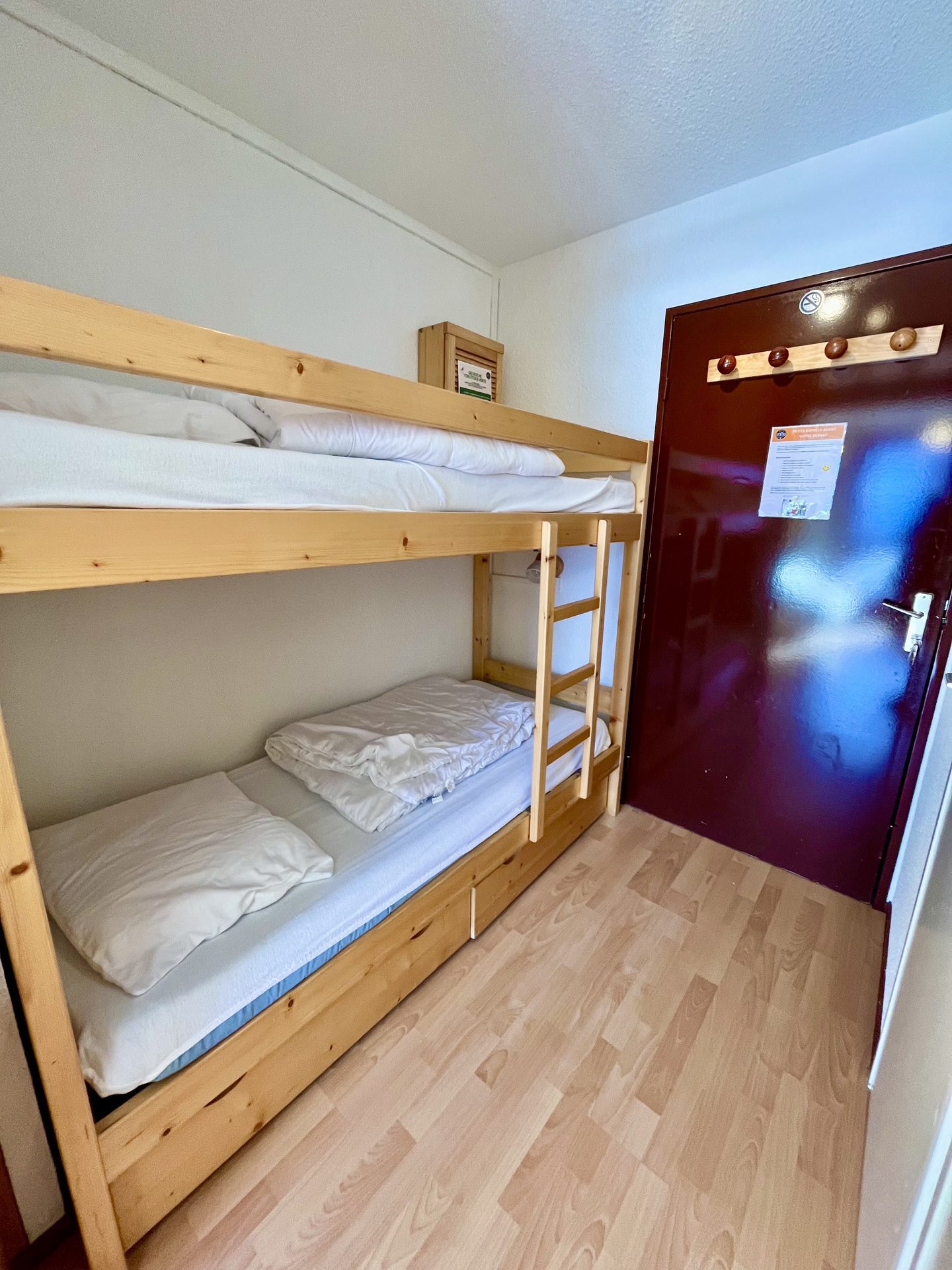 - Couchages : coin montagne avec lits superposes (2x90), sejour avec un canape-lit deux places (140). Literie equipee de couettes.