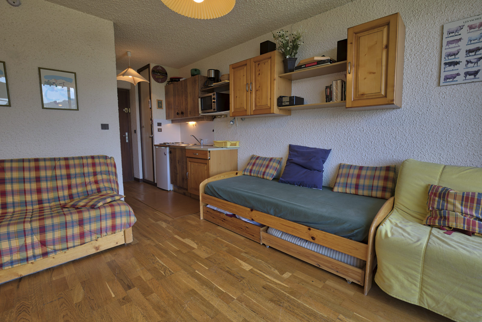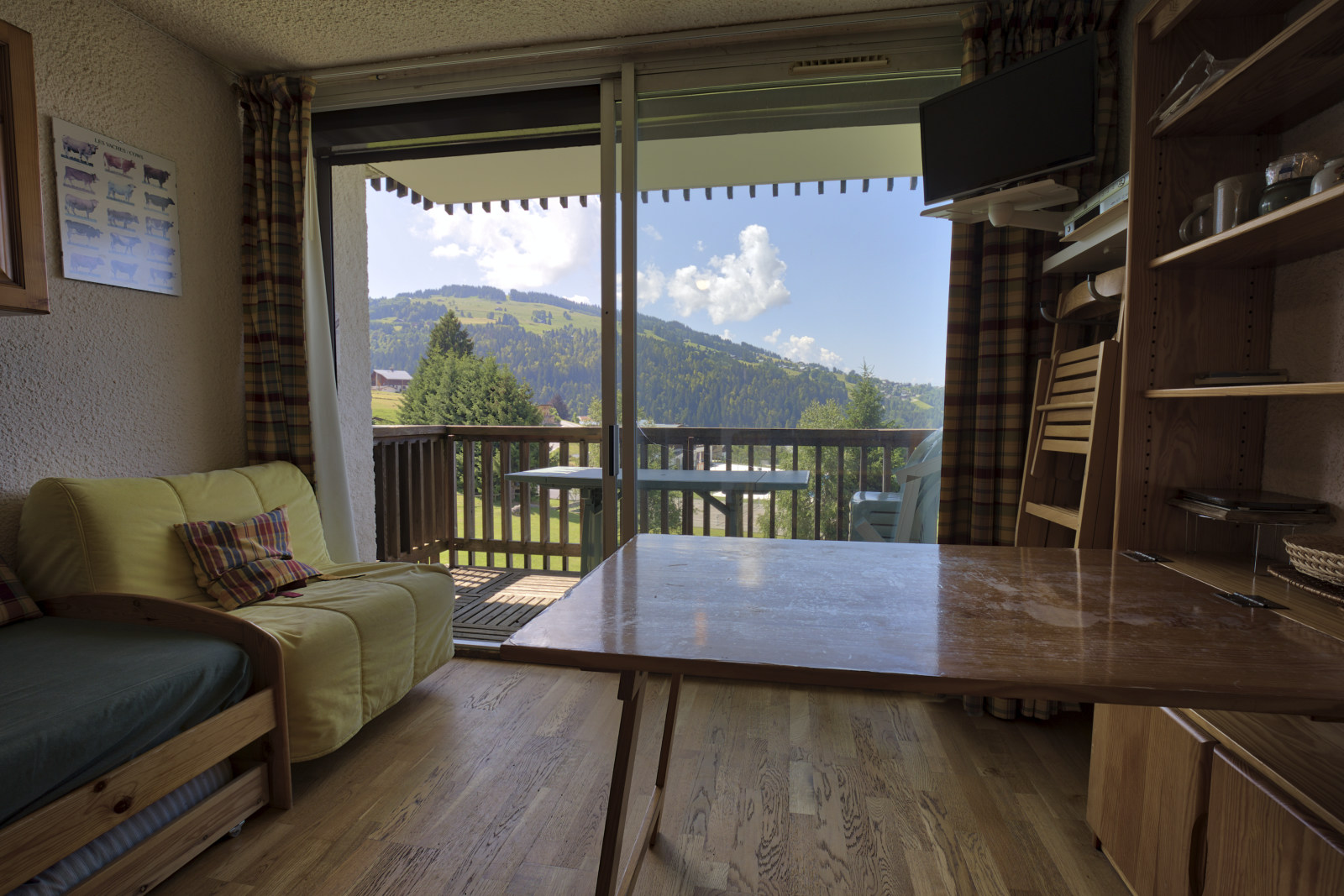 NOTRE AVIS : Studio fonctionnel, lumineux avec sa grande baie vitree. Balcon avec vue tres degagee. Ideal pour des vacances en amoureux ou pour un couple avec enfants.