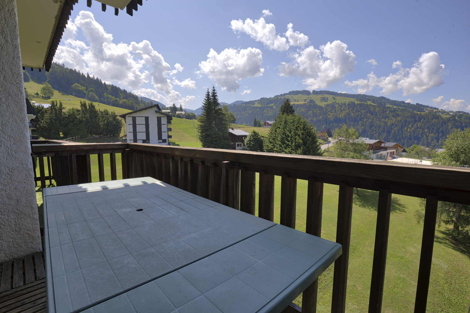 Agreable studio pouvant accueillir jusqu'a 4 voyageurs, de 20 m2 au 4eme etage avec un balcon SUD offrant une vue degagee sur le village, le Mont Charvin et la vallee.