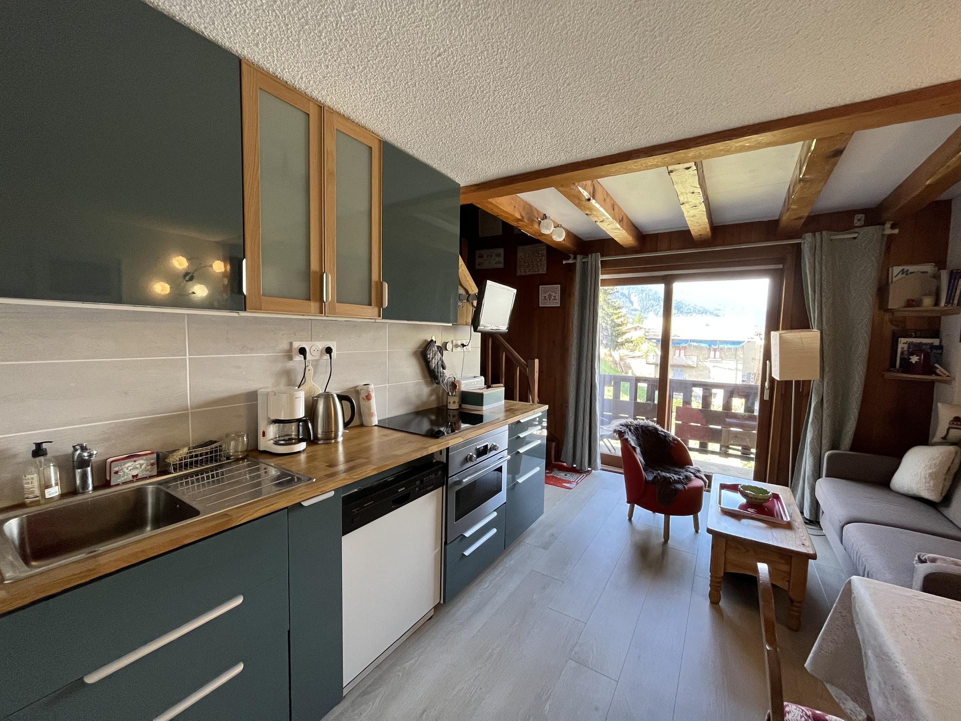 Sejour avec cuisine equipee : four/micro-ondes, refrigerateur, plaques vitroceramique, lave vaisselle.