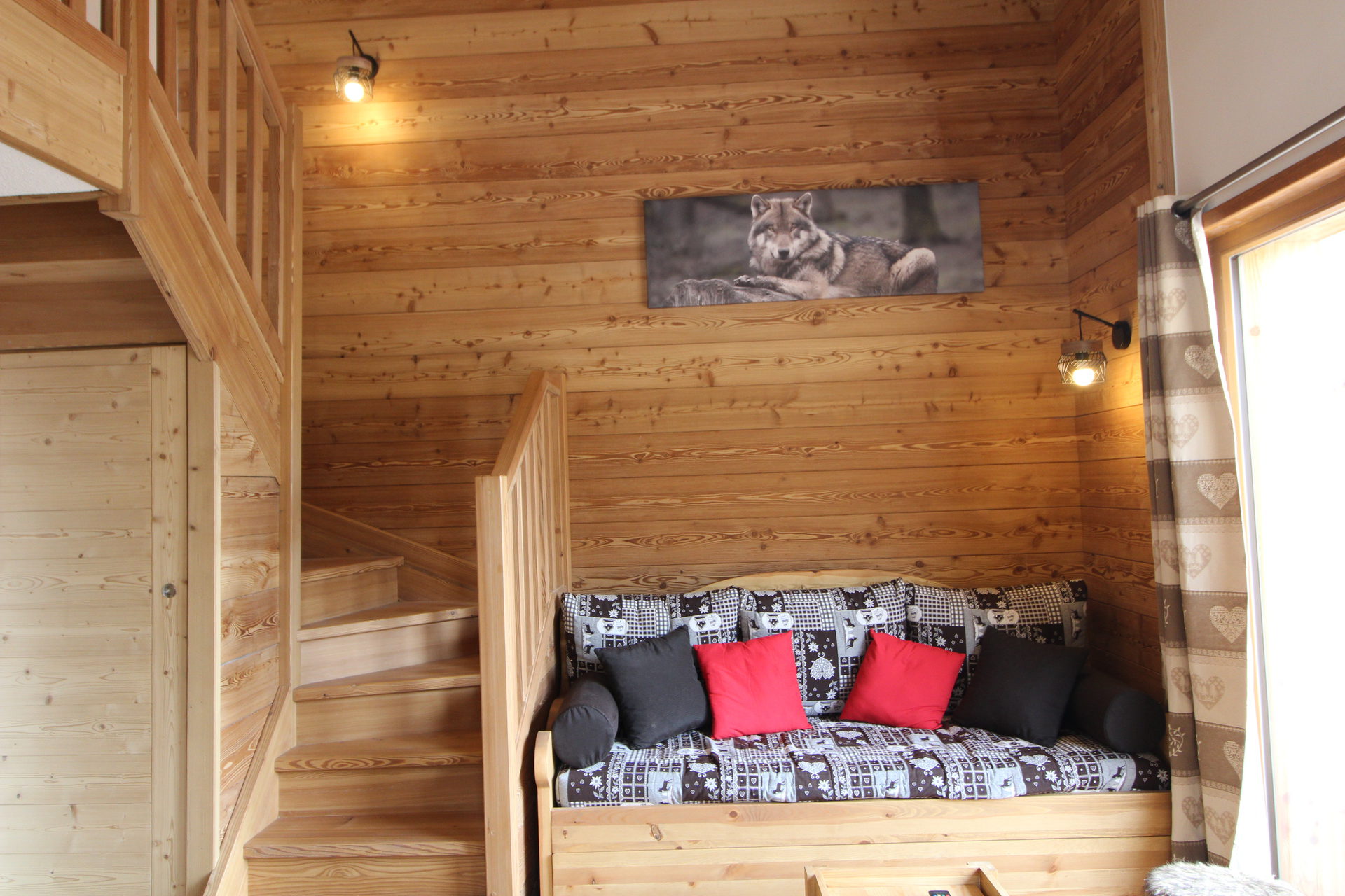 Sejour : Banquette et couchage pour un lit 1 place.