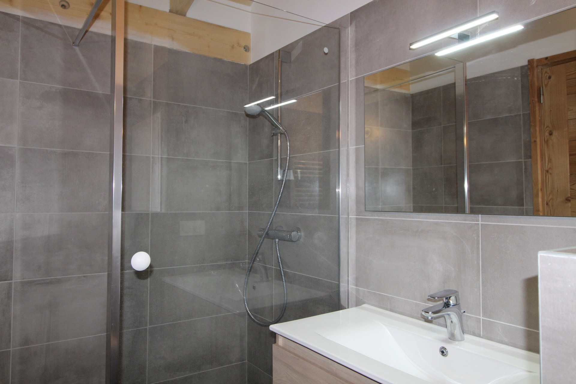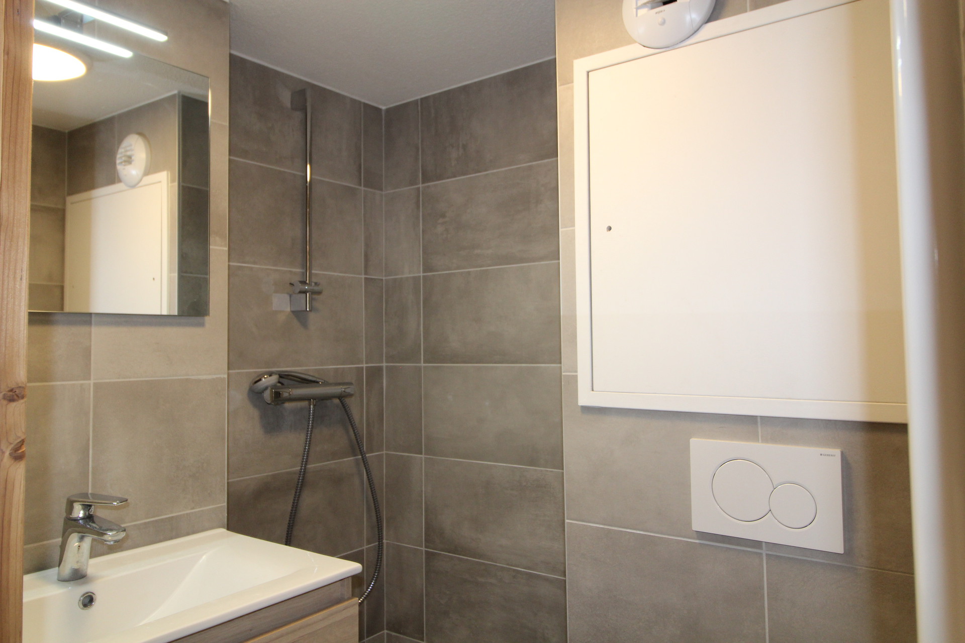 Chambre 1 : 2 lits superposes - Salle d'eau 1 : douche, lavabo et WC.