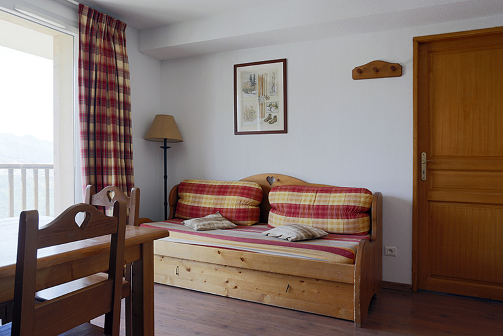 Séjour avec 1 canapé-lit gigogne double et télévision.