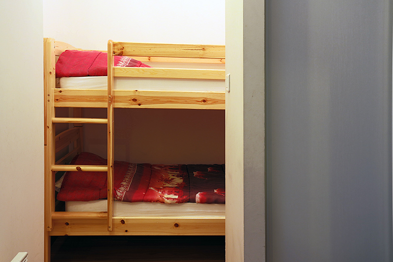 Chambre avec 1 lit double et cabine avec 1 lit superposé en 90 (le couchage en hauteur ne convient pas aux enfants de moins de 6 ans).