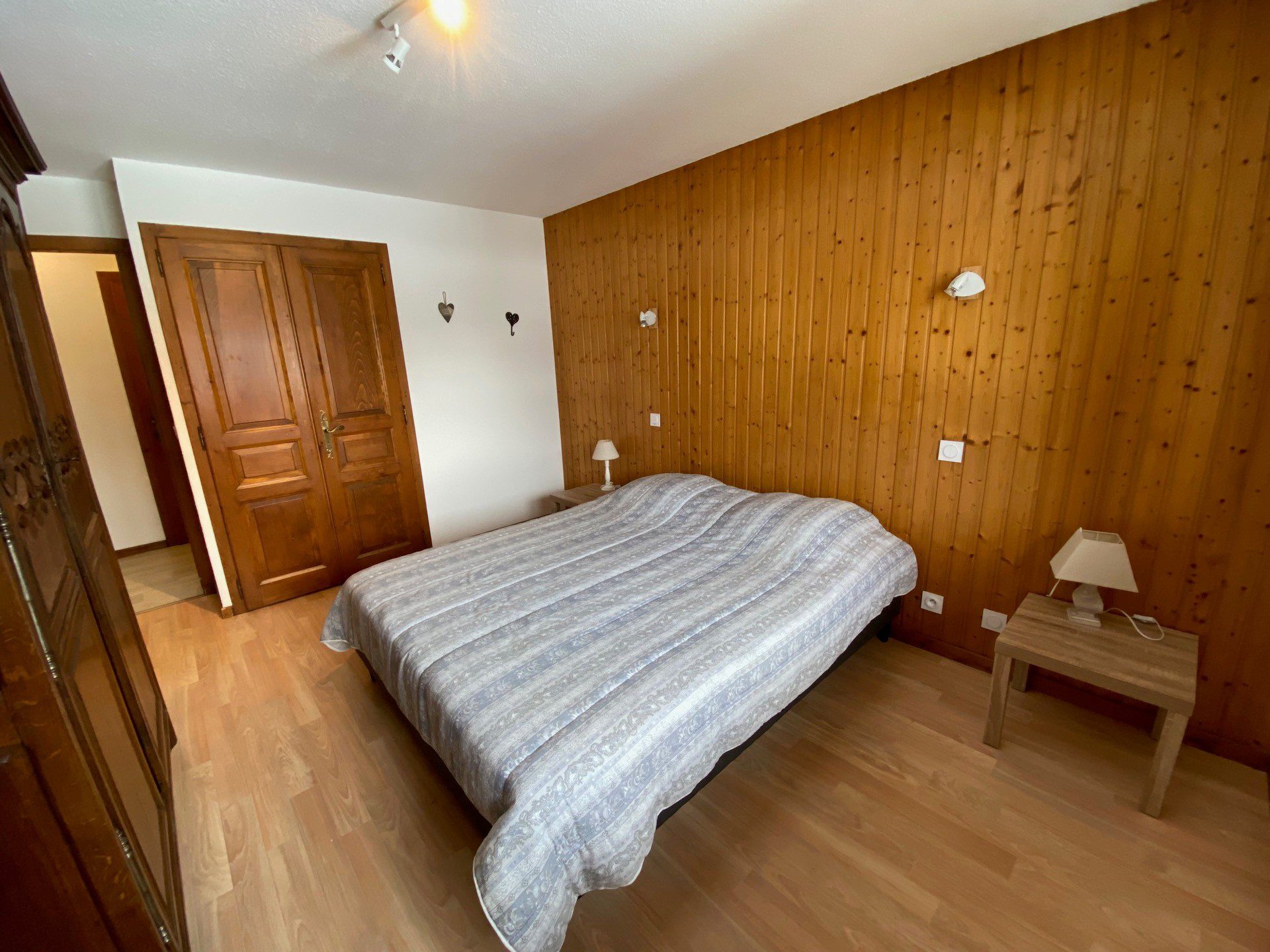 Etage principal : - Chambre 1 (13.94m2) avec 1 lit (160x190) pour 2 personn, placard penderie, fenetre sud vue montagne et porte fenetre acces balcon, vue montagne