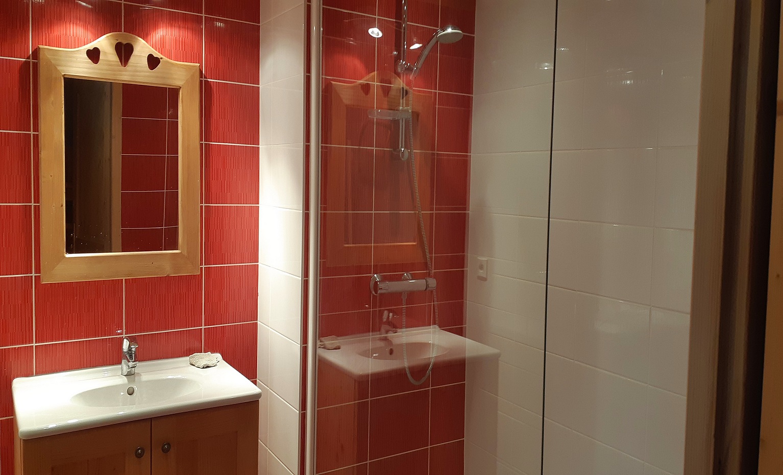 Entrée/Hall (3.50 m²) : coin nuit en couloir avec lits - SdBains (4m²): douche, lavabo - WC (1.90m²) - Coin cabine (4m²) : Lits, penderie - Chambre (7.75m²): lit, penderie, fenêtre sud - Séjour (26m²) : coin kitch. équipée (cafetière à filtre, bouilloire, grille-pain, micro-ondes, appareil à raclette), coin salon avec canapé, TV écran plat, coin repas avec table et chaises, baie vitrée accès balcon.