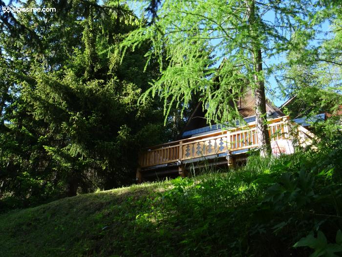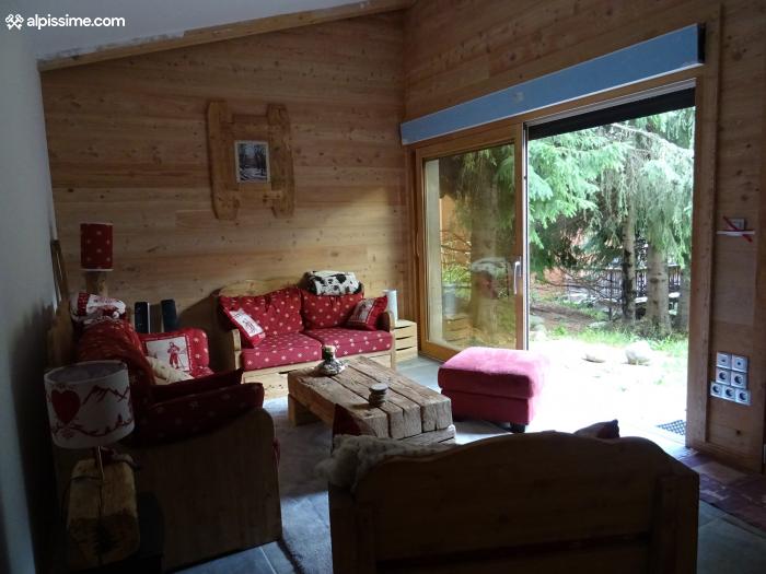 Chalet de 92 m² sur 3 niveaux. Situé en plein centre de la station tout en étant isolé au milieu d'un jardin entouré de sapins.