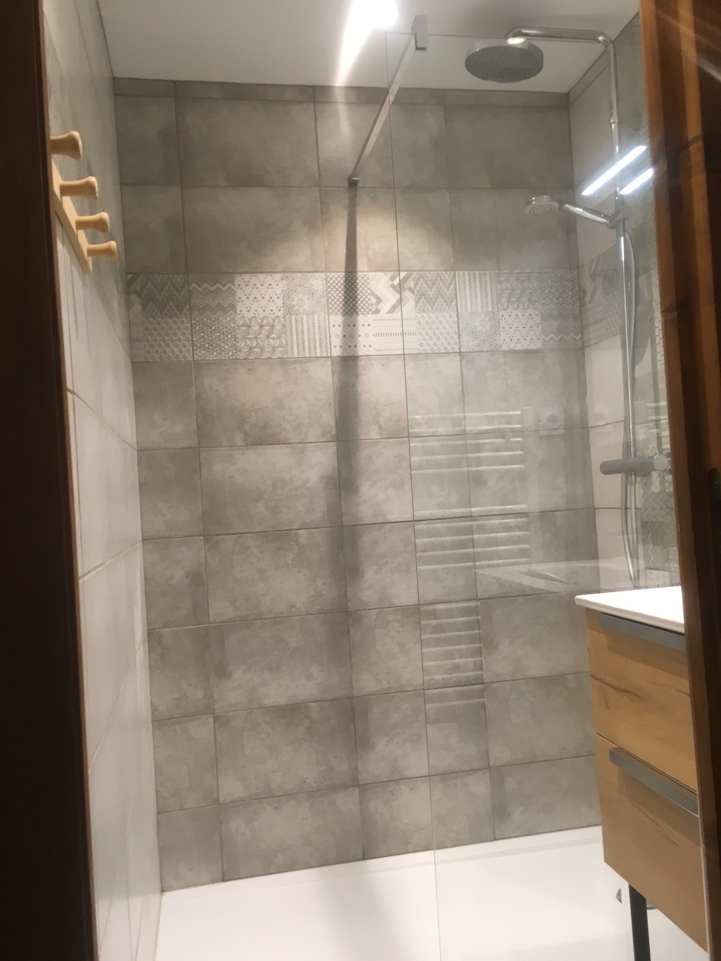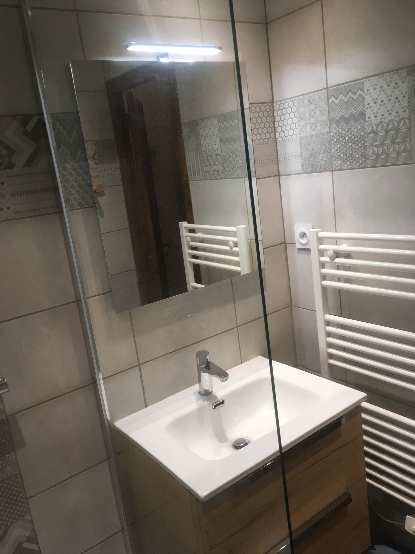 Salle d'eau : lavabo, douche et seche-cheveux. WC independant.