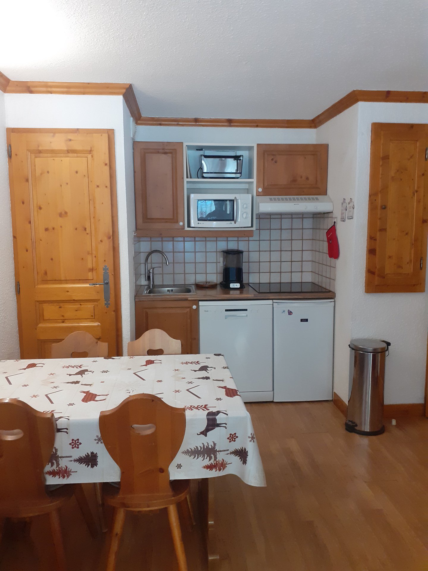 - Coin cuisine : micro-ondes, plaque induction, mini-four, lave-vaisselle, refrigerateur (110L avec freezer)