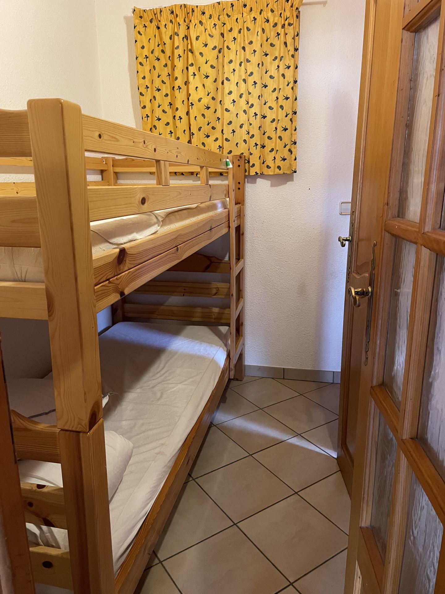 Cabine ferme par une porte : 2 lits superposes 80cm.
