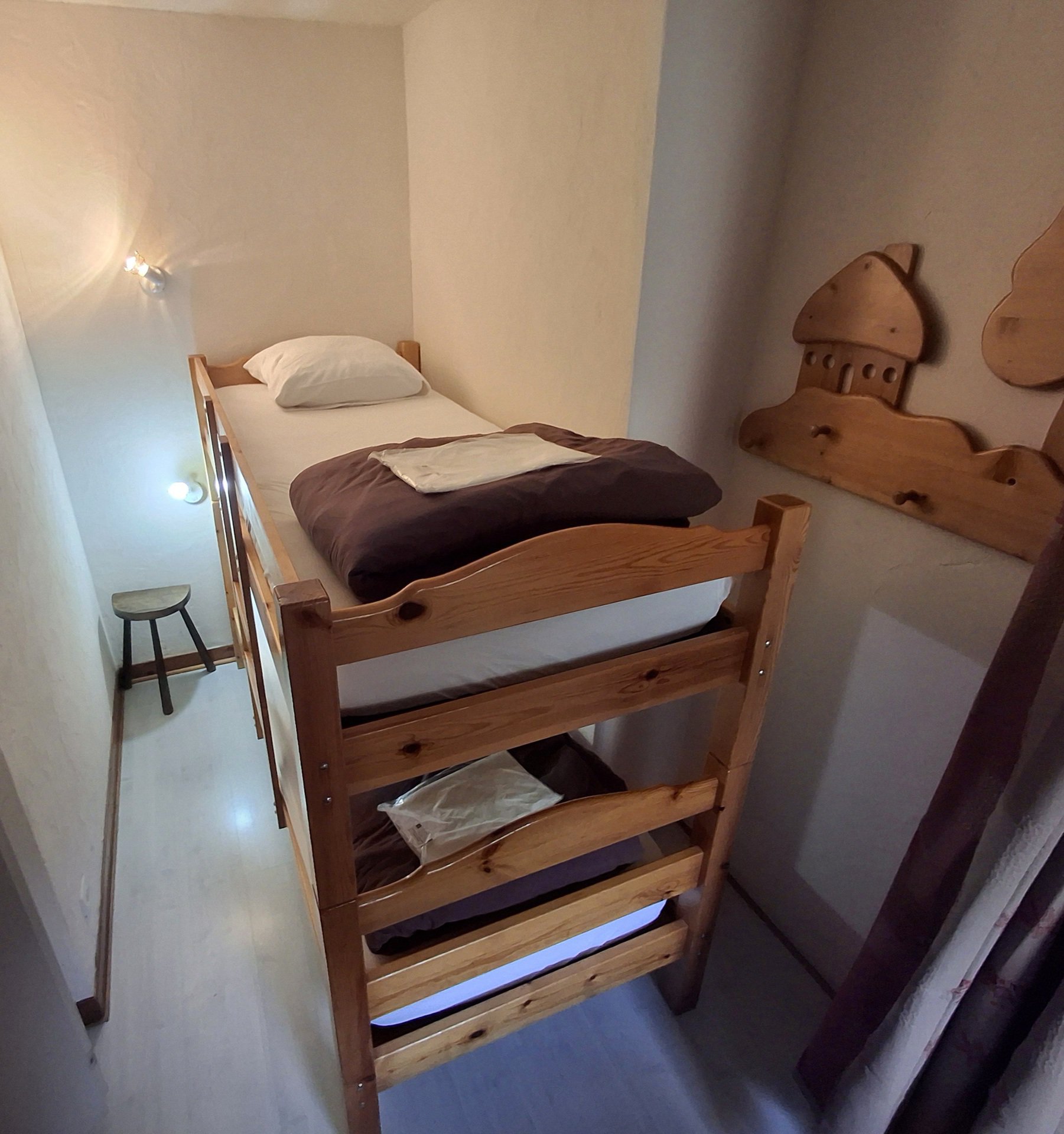 Cabine (separee du sejour par un rideau/ 4m2) : 2 lits superposes (2x 80x190cm)