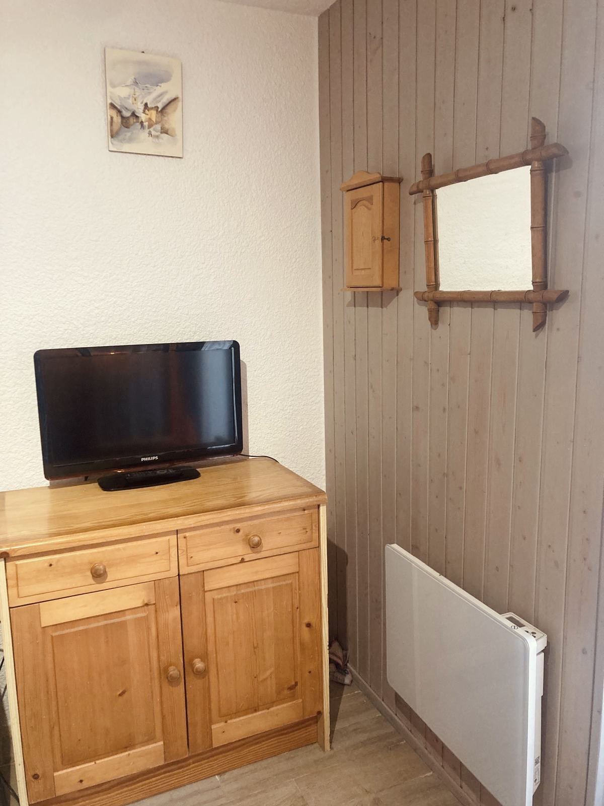 Animaux refusés. Linge de lit et de toilette non fournis. Ménage final inclus. Casier à skis. Parking collectif non privatif. Terrasse exposée Sud-Ouest (8m²) avec salon de jardin. Double accès au studio par la porte principale et par la terrasse (porte-fenêtre).