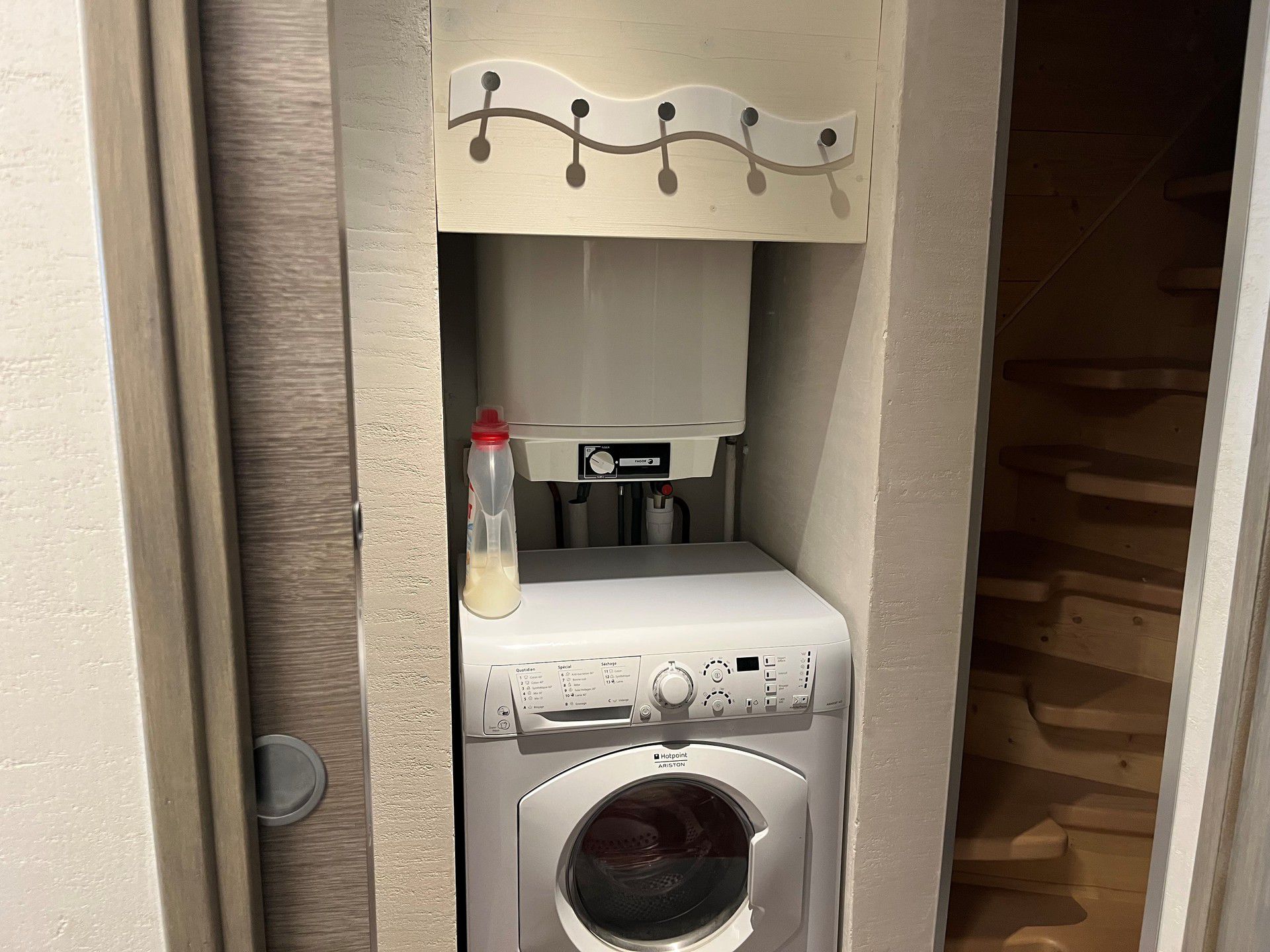 Couloir acces mezzanine (separe de l'entree par une porte) : lave-linge sechant.