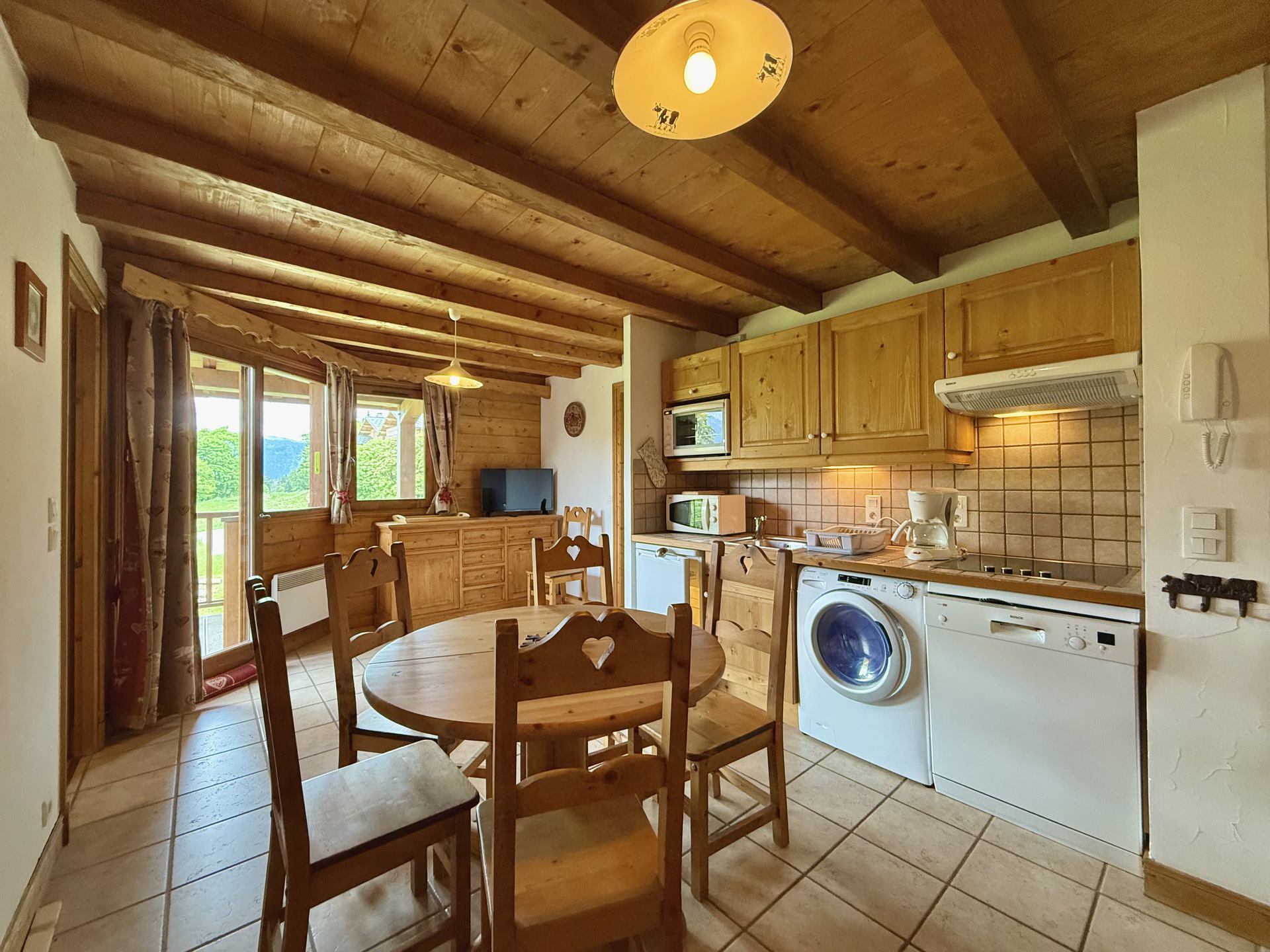 D'une surface d'environ 38 m2, ce logement beneficie d'un emplacement privilegie a deux pas de la place du Cernix. Il s'ouvre sur une belle terrasse orientee Ouest, ideale pour profiter pleinement de la vue degagee sur le Mont Charvin. Pense pour heberger confortablement jusqu'a cinq occupants, il propose un agencement pratique et agreable a vivre.