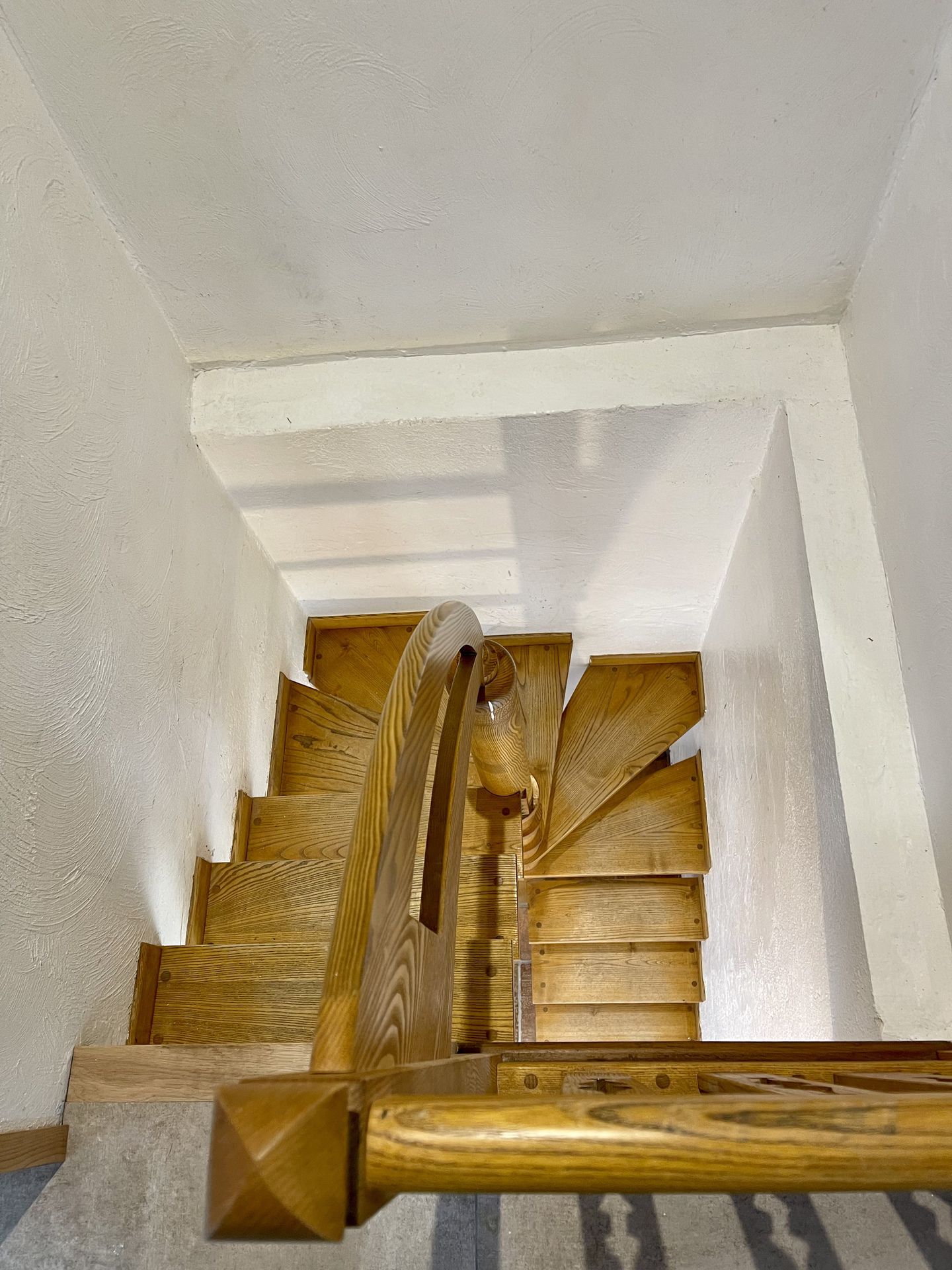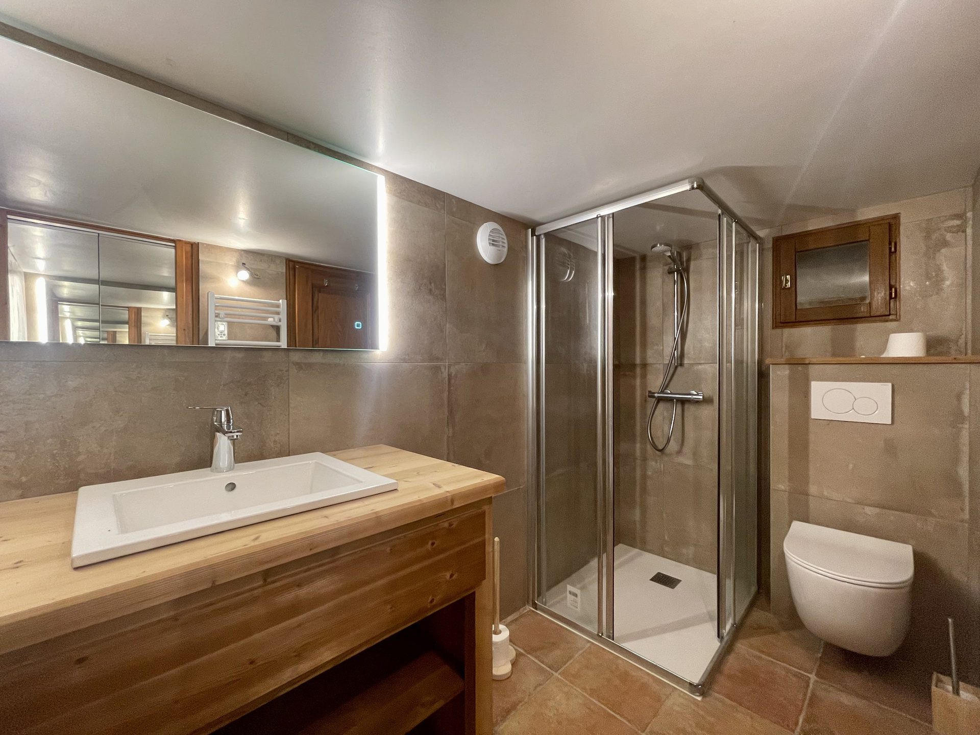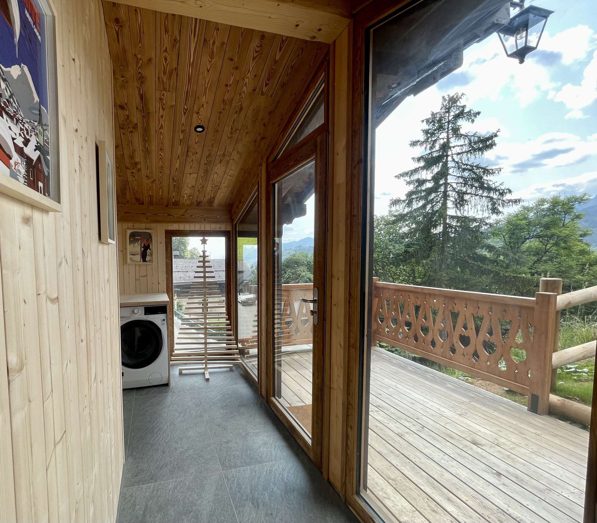 *1ER NIVEAU : buanderie avec lave-linge/sechant, et terrasse solarium face au Mont Charvin. Salle de bains avec douche a l'italienne (attention, hauteur sous plafond <1.90m). Acces a l'etage superieur par l'escalier en colimacon.