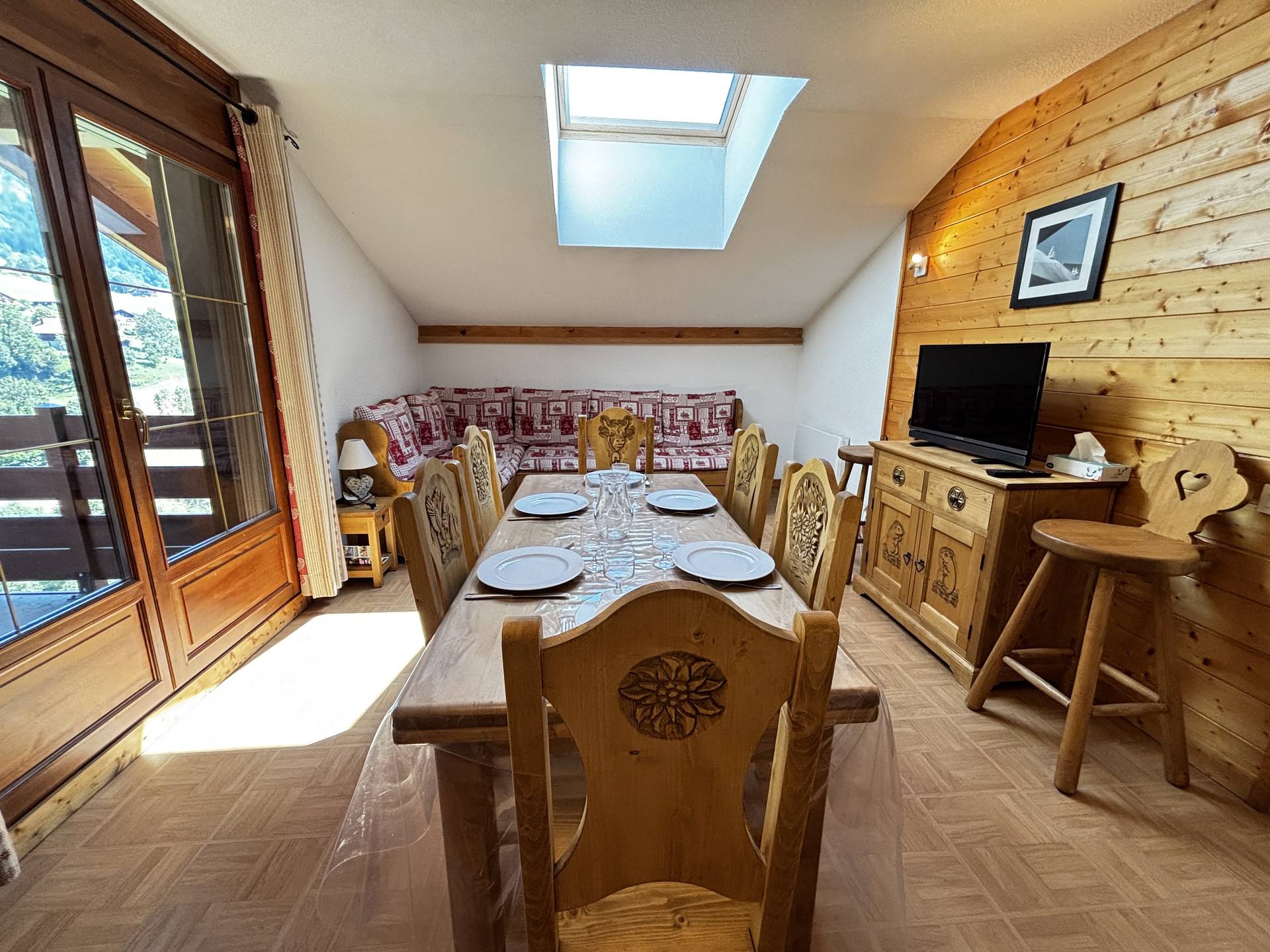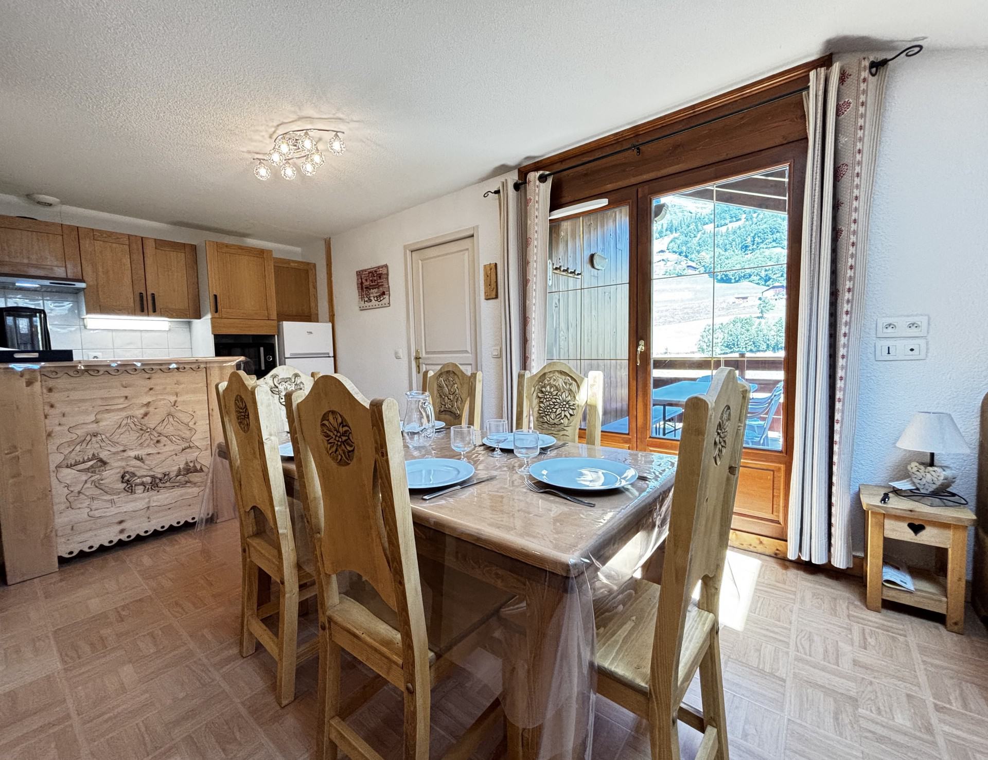 Appartement au pied des pistes de l'Espace Diamant pour six personnes au premier etage avec une grande terrasse de 10 m2 offrant une belle vue montagnes.