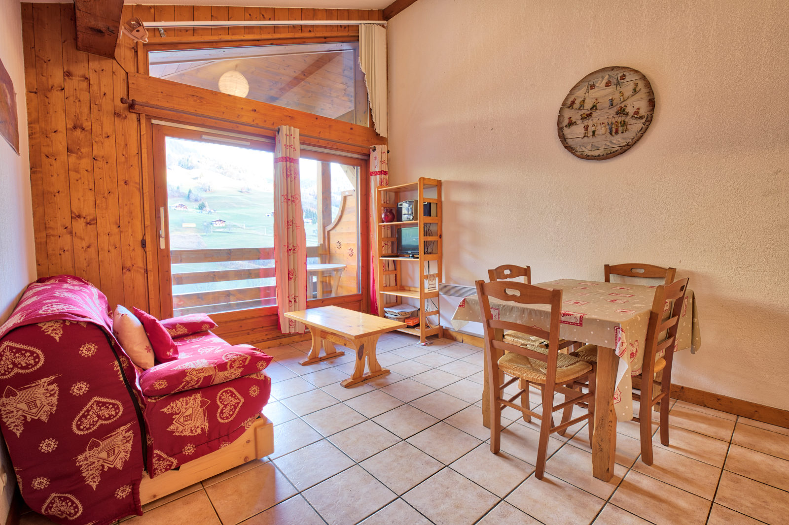 Sur le front de neige de Flumet, appartement de 26 m² pour quatre personnes. Au troisième étage de la résidence, vous apprécierez la vue montagnes depuis son balcon.