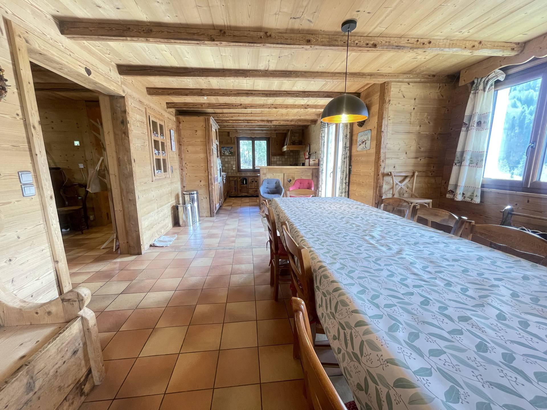 Situe sur le versant sud-ouest du charmant village de Flumet, ce chalet beneficie d'un emplacement privilegie, ideal pour des sejours en famille ou entre amis. D'une capacite de 8 personnes, il offre un cadre parfait pour des vacances en groupe, alliant confort et convivialite. Grace a son exposition optimale, vous pourrez profiter pleinement de la terrasse et des balcons tout au long de la journee. Son terrain entierement clos garantit un espace prive et securise, ideal pour que les enfants s'amusent en toute tranquillite. En ete, le plan d'eau de Flumet se trouve a moins d'1 km a pied, offrant un lieu parfait pour se rafraichir et se detendre.