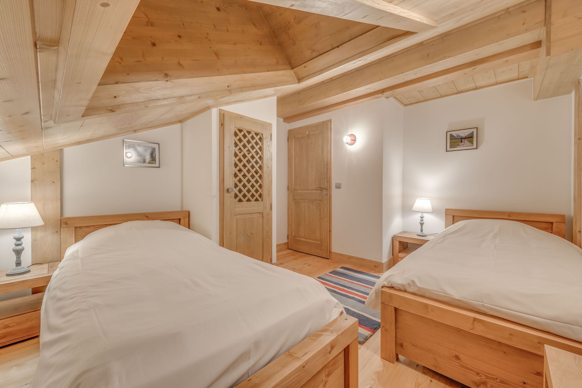 * Chambre 2 : 2 lits simples (90x200), chevets, lampes de chevet, placard avec etagere et penderie