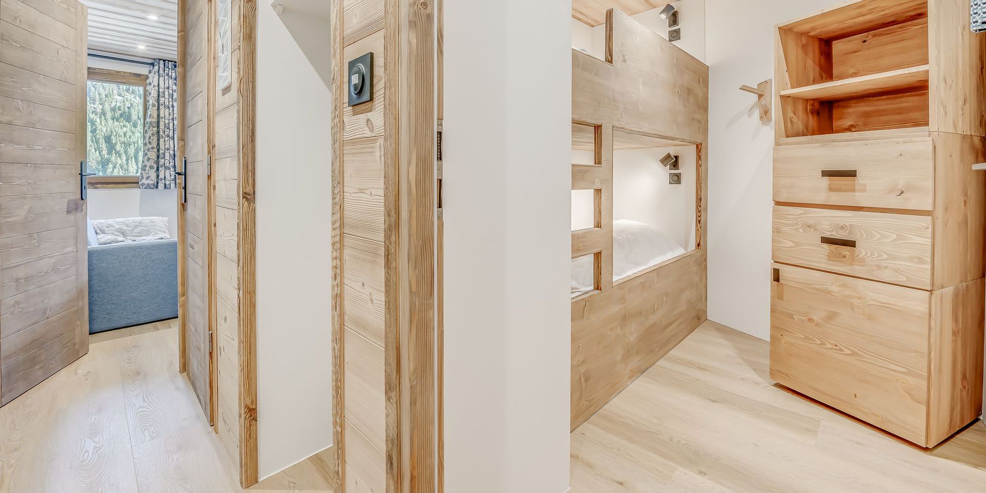 - 1 chambre orientee Nord, avec 2 lits superposes et couettes,