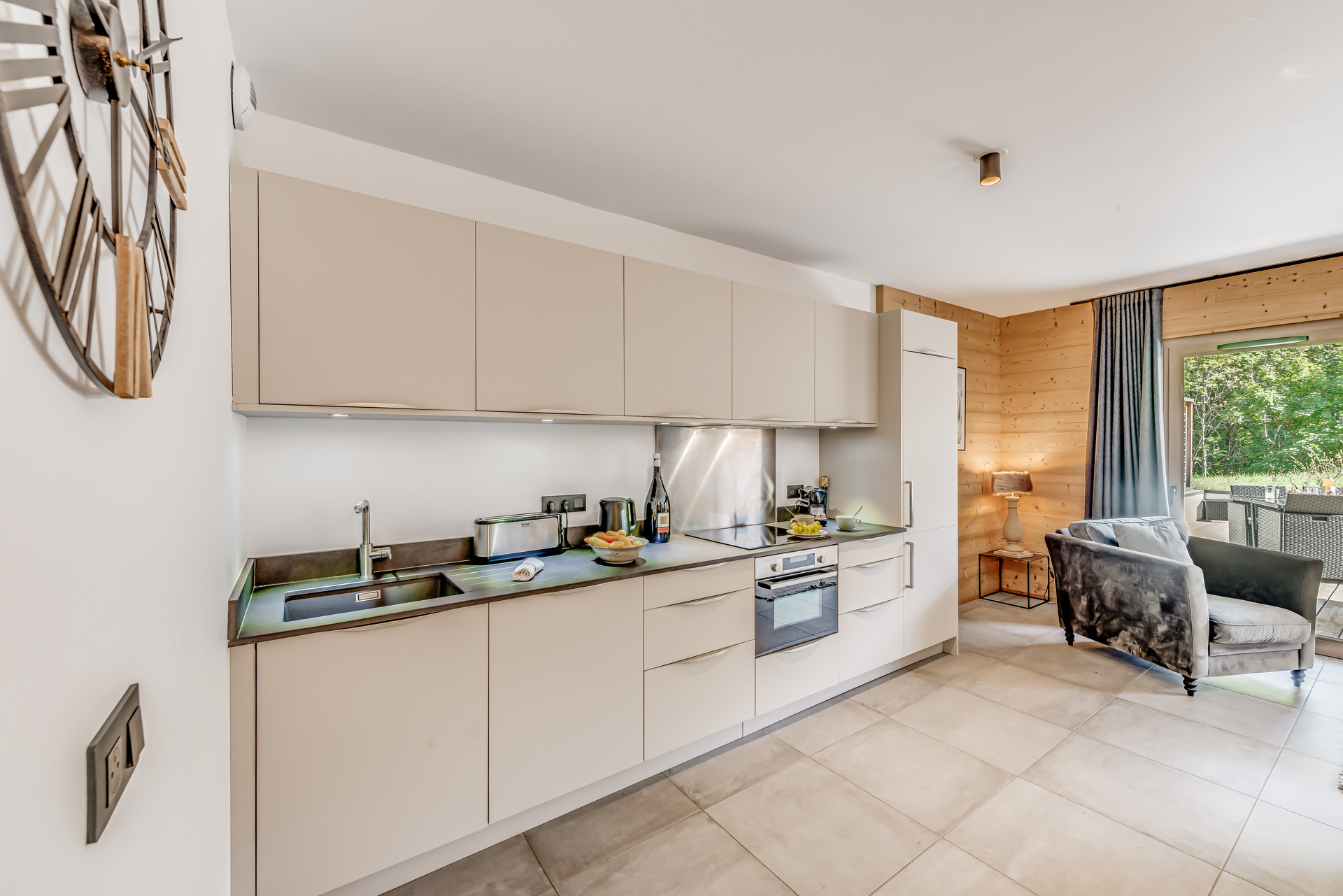 - 1 Cuisine ouverte sur le sejour, equipee avec lave-vaisselle, table de cuisson a induction, four multifonction, refrigerateur, congelateur