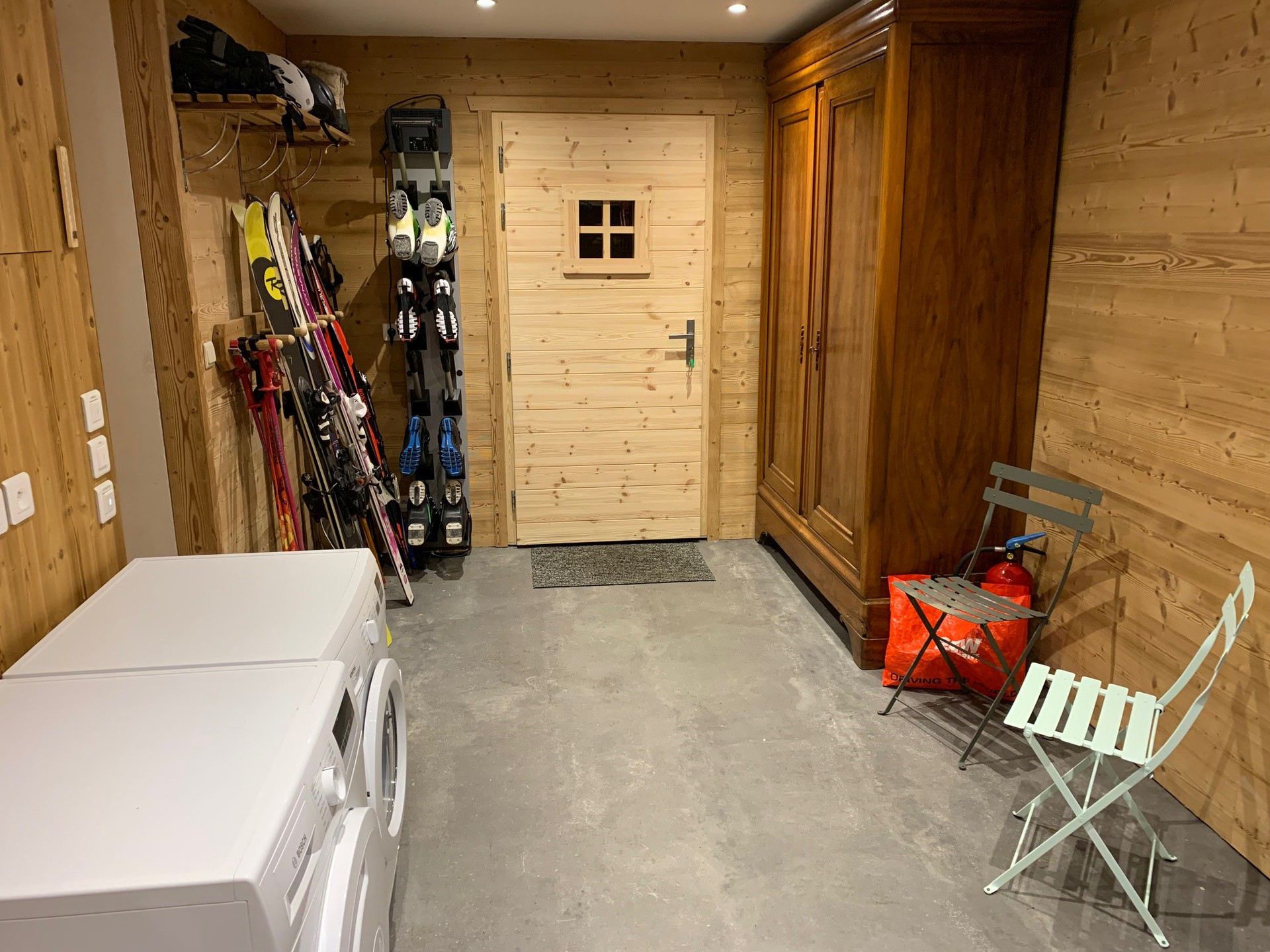 + une pièce faisant office de buanderie avec lave-linge et sèche-linge, rangements pour les vêtements d'hiver, stockage skis et chaussures avec sèche-chaussures, sacs à dos.