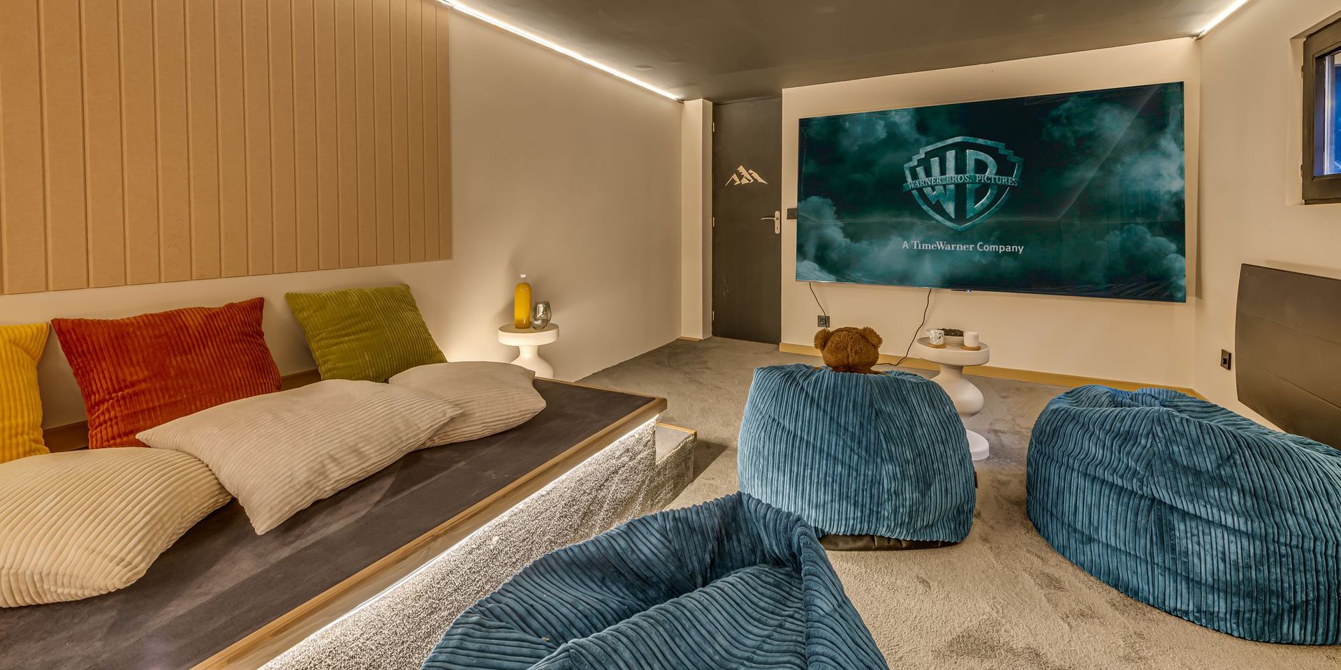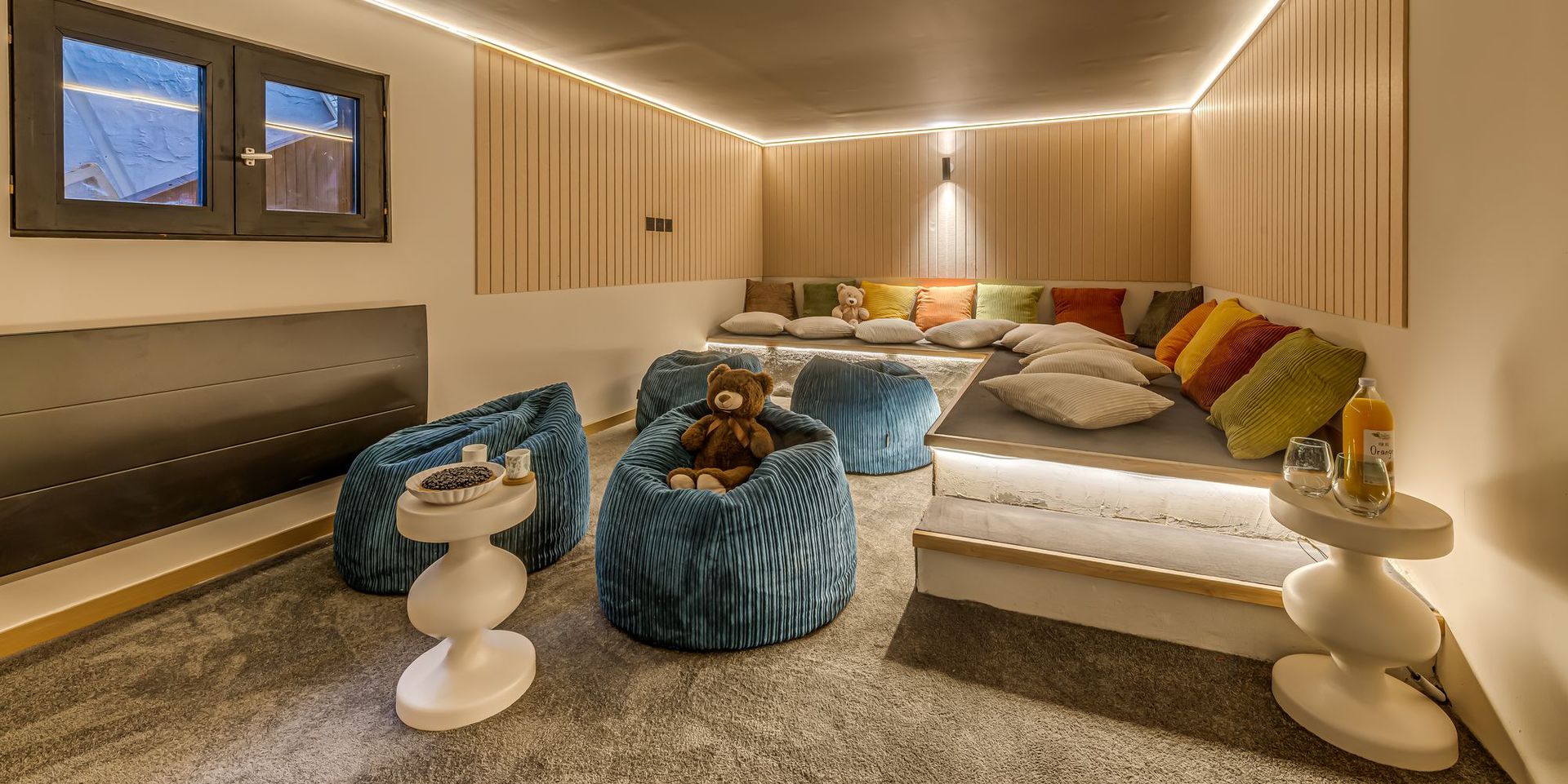 Mezzanine avec fauteuils, telecabine et jeux enfants.