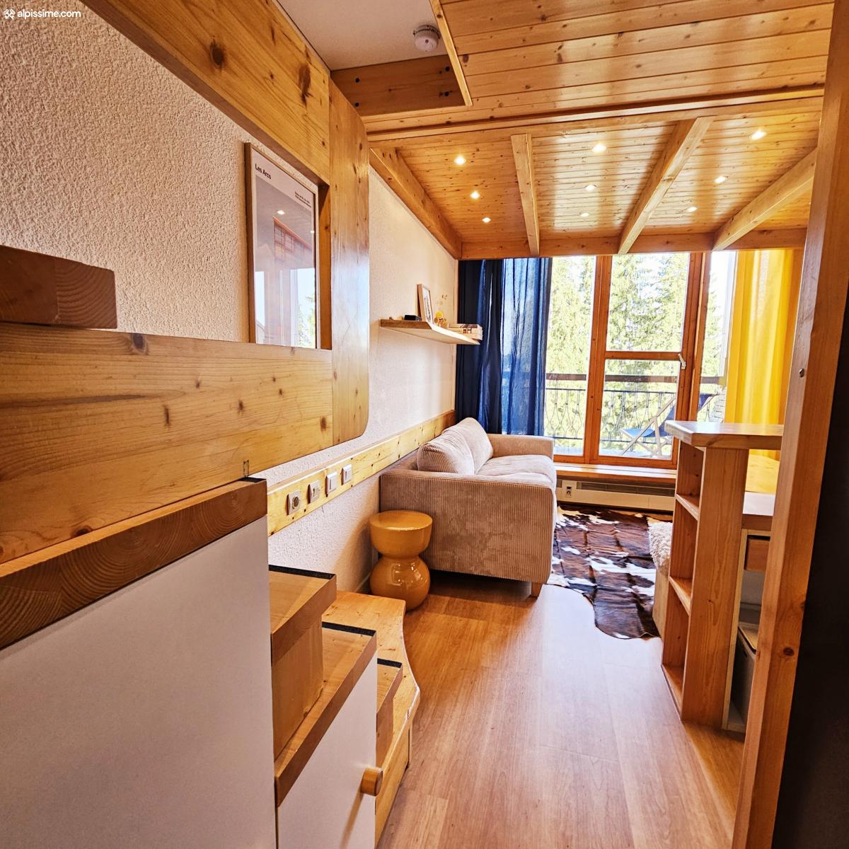 Séjournez dans ce bel appartement pour 4 à 5 personnes rénové avec goût pour conserver le style traditionnel de l'architecte Charlotte Perriand et l'esprit des Arcs.
