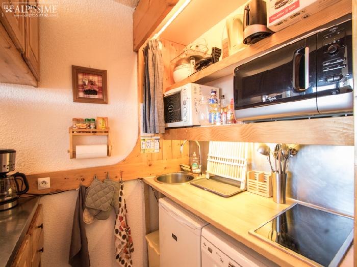 Appartement tout confort et chaleureux de type T2bis (chambre + grande alcôve) avec belle pièce de vie et grand balcon vue vallée baigné de soleil (expo Sud-Ouest).