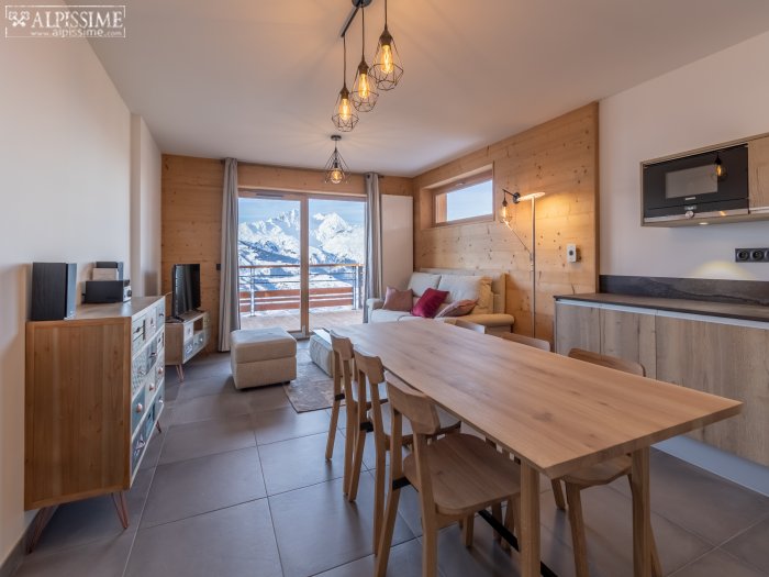 Ce logement est très bien aménagé et joliment décoré. Il jouit d'un emplacement privilégié dans la station et d'une vue époustouflante sur les montagnes.