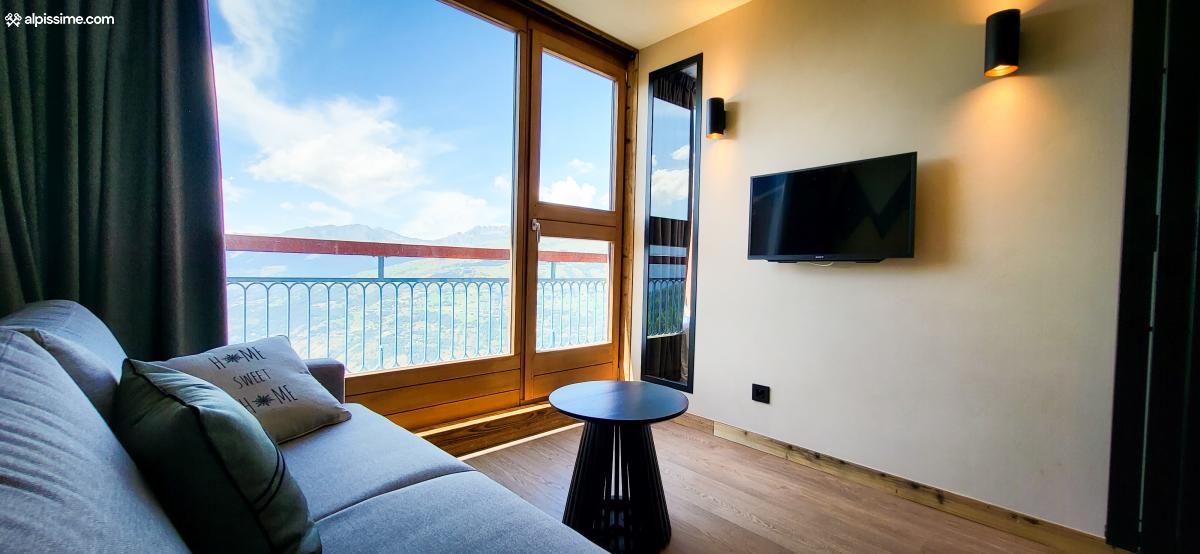 Séjournez dans ce splendide appartement entièrement rénové à l'été 2024 avec des matériaux de qualité. Il est situé dans la résidence Nova à Arc 1800 et offre une vue dégagée sur la vallée de la Tarentaise.