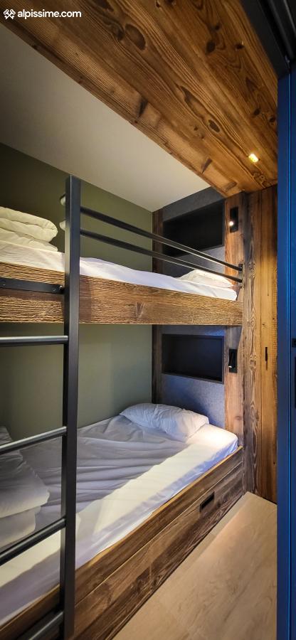 - Une cabine transformée en chambre privative avec lits superposés et tiroirs de rangement, pouvant être isolée par une cloison coulissante pour plus d'intimité.