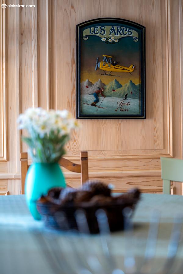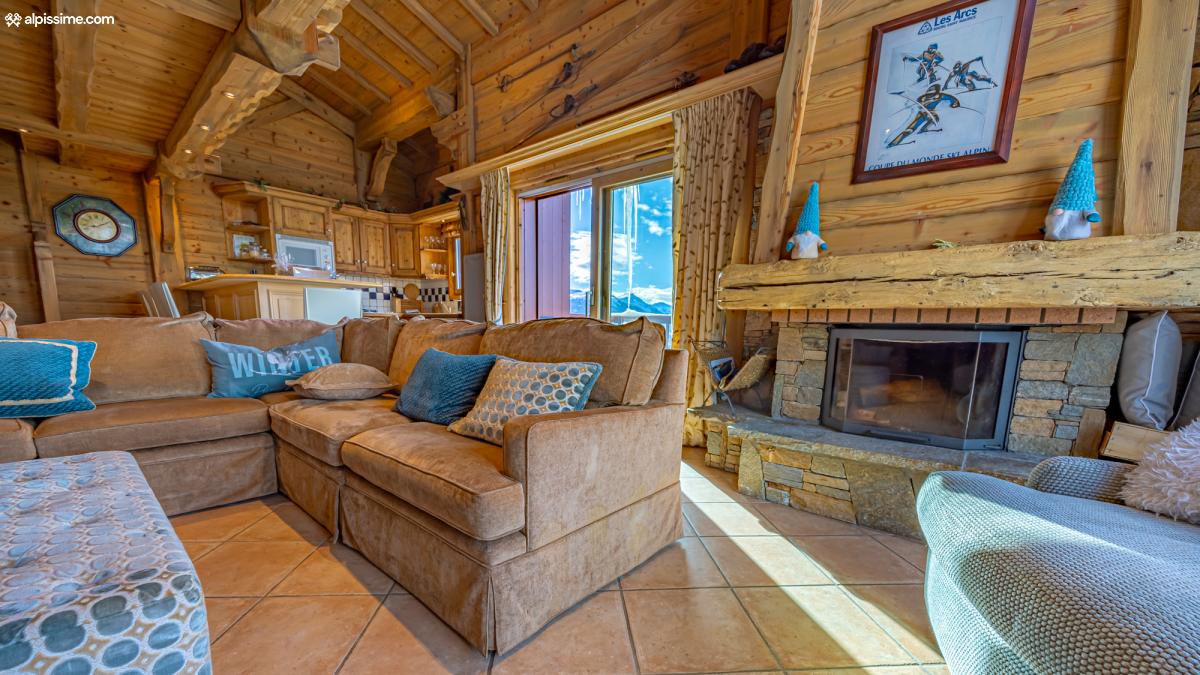 Découvrez le confort de la pièce de vie spacieuse, équipée d'une cuisine ouverte, idéale pour profiter d'un apéritif après-ski ou préparer des repas dans une ambiance chaleureuse. Le séjour cosy avec cheminée est parfait pour se détendre tout en bénéficiant de la lumière naturelle provenant des grandes baies vitrées. Ces dernières ouvrent sur un balcon orienté nord et une terrasse à l'ouest, offrant des vues imprenables sur le Mont Blanc et la lumineuse vallée de la Tarentaise.