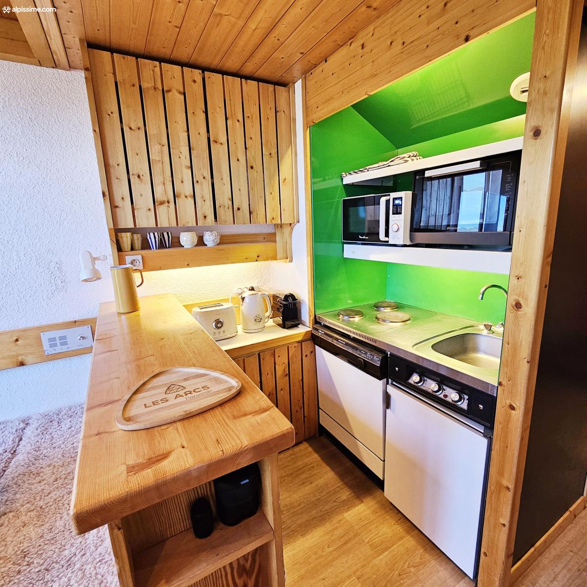 Séjournez dans ce bel appartement pour 4 à 5 personnes rénové avec goût pour conserver le style traditionnel de l'architecte Charlotte Perriand et l'esprit des Arcs.
