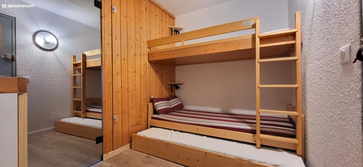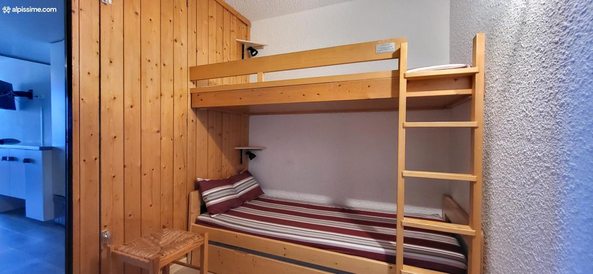- Une entrée accueillant un coin montagne, avec deux lits superposés et un lit gigogne (3 couchages de 80x190cm)