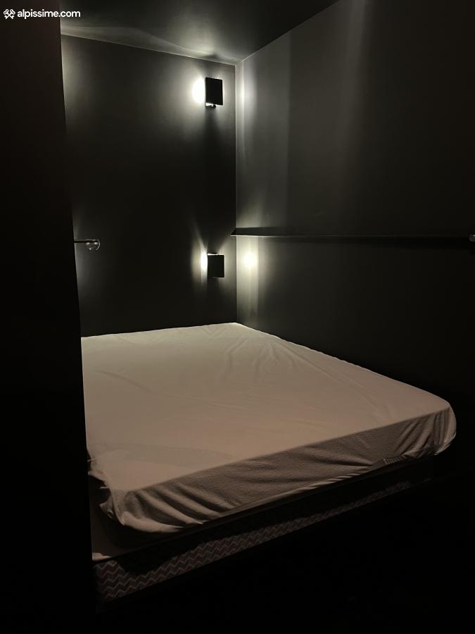- Un ancien espace cabine, transformé en chambre noire accueillant un lit deux places pour offrir intimité et confort aux parents