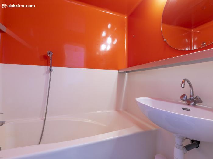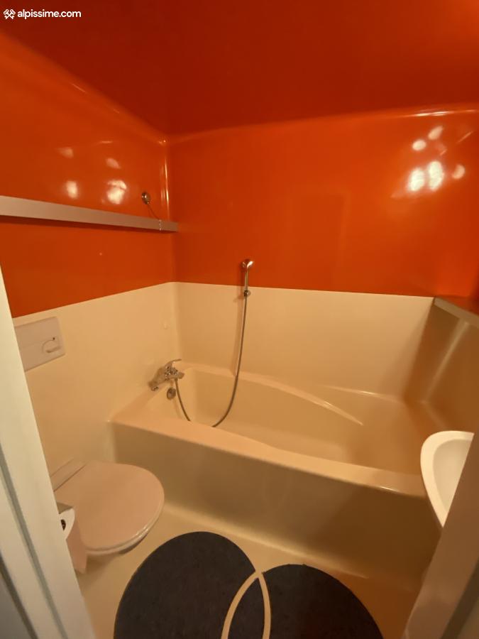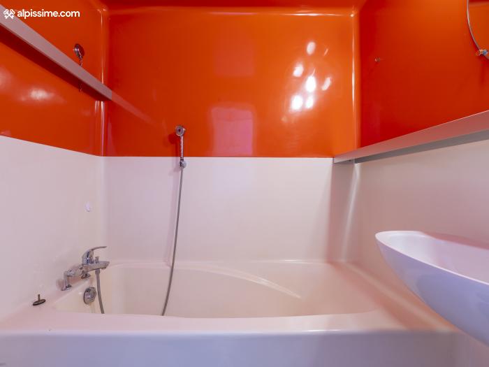 - Une salle de bain Charlotte Perriand avec baignoire et WC