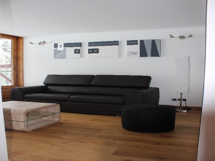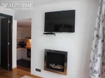 - Salon avec cheminée éthanol, TV et lecteur Blue Ray (face à la montagne).