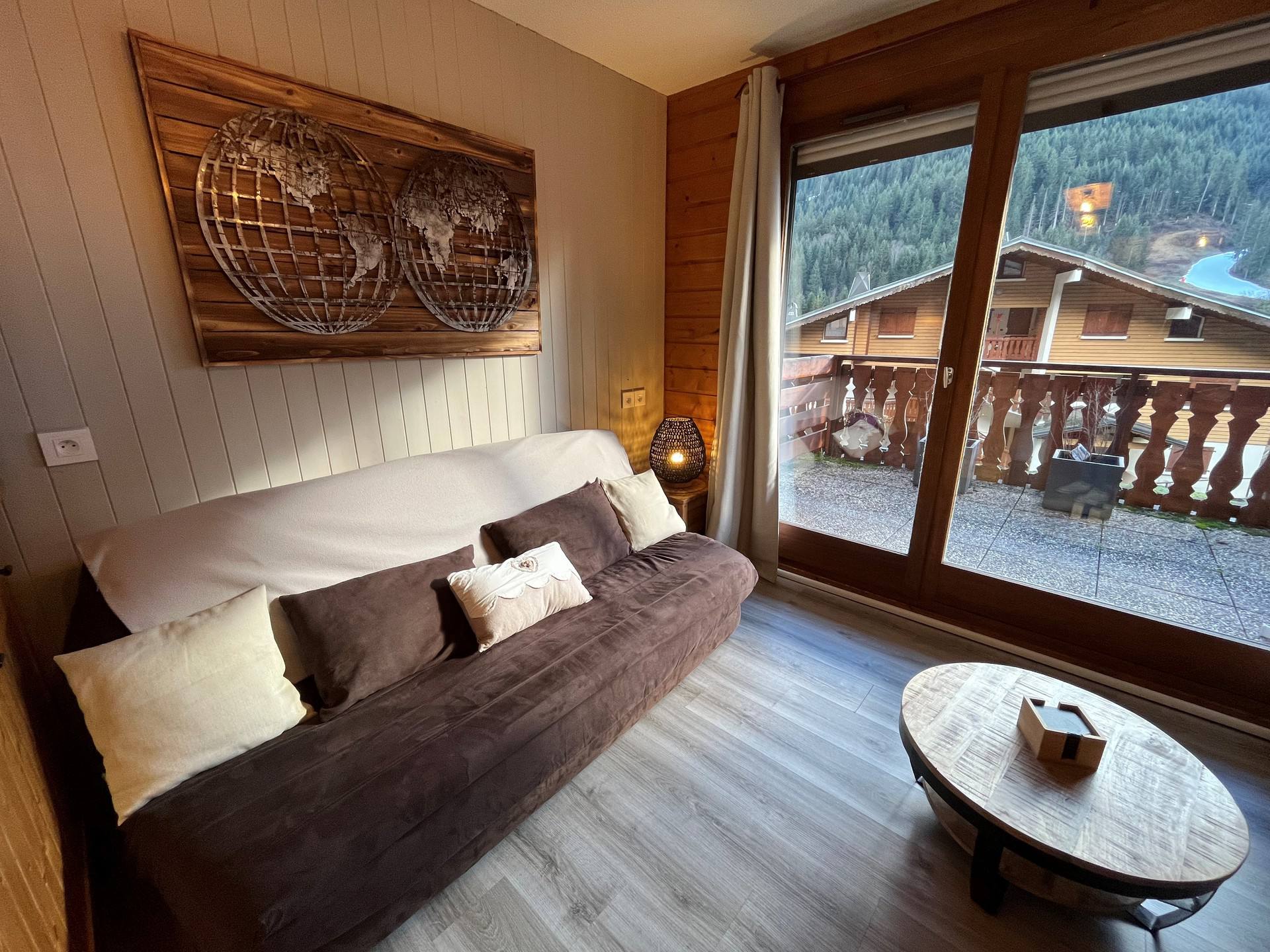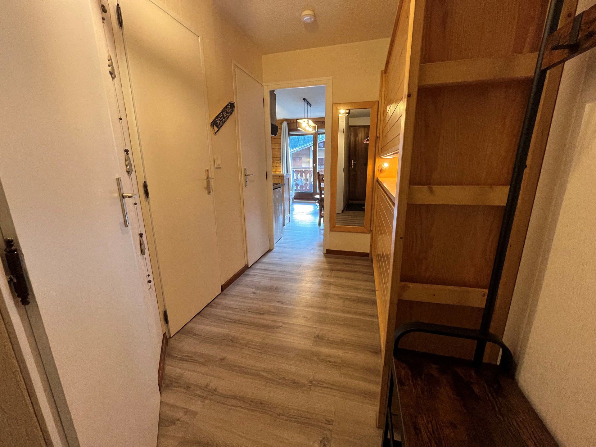 A l'entree, un coin montagne comprenant 2 lits rabattables mesurant 80x200 avec 2 couettes de 200x200 fournis, une chambre avec un lit double de 140x200 incluant une tele, une salle de bains, un WC separe, un sejour, une cuisine, et une grande terrasse exposee pleins sud.