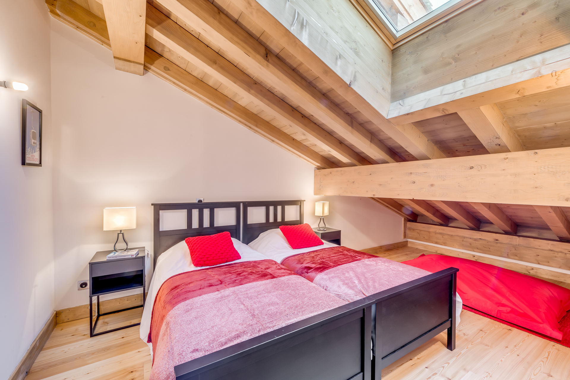 Chambre 3 - ASPEN: 2 lits simples (90x200), chevets, lampes de chevet, placard avec etagere et penderie - fenetre de toit,