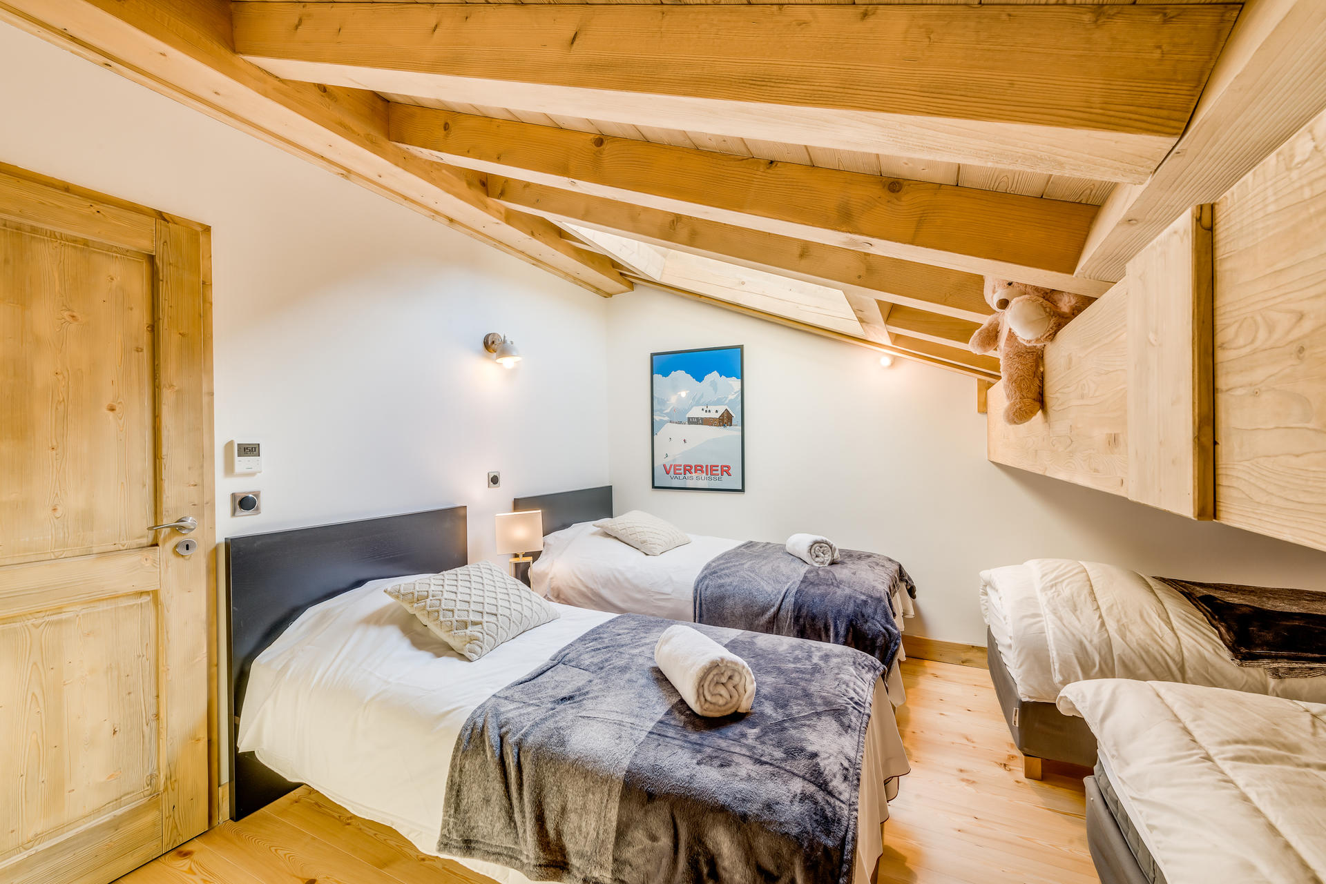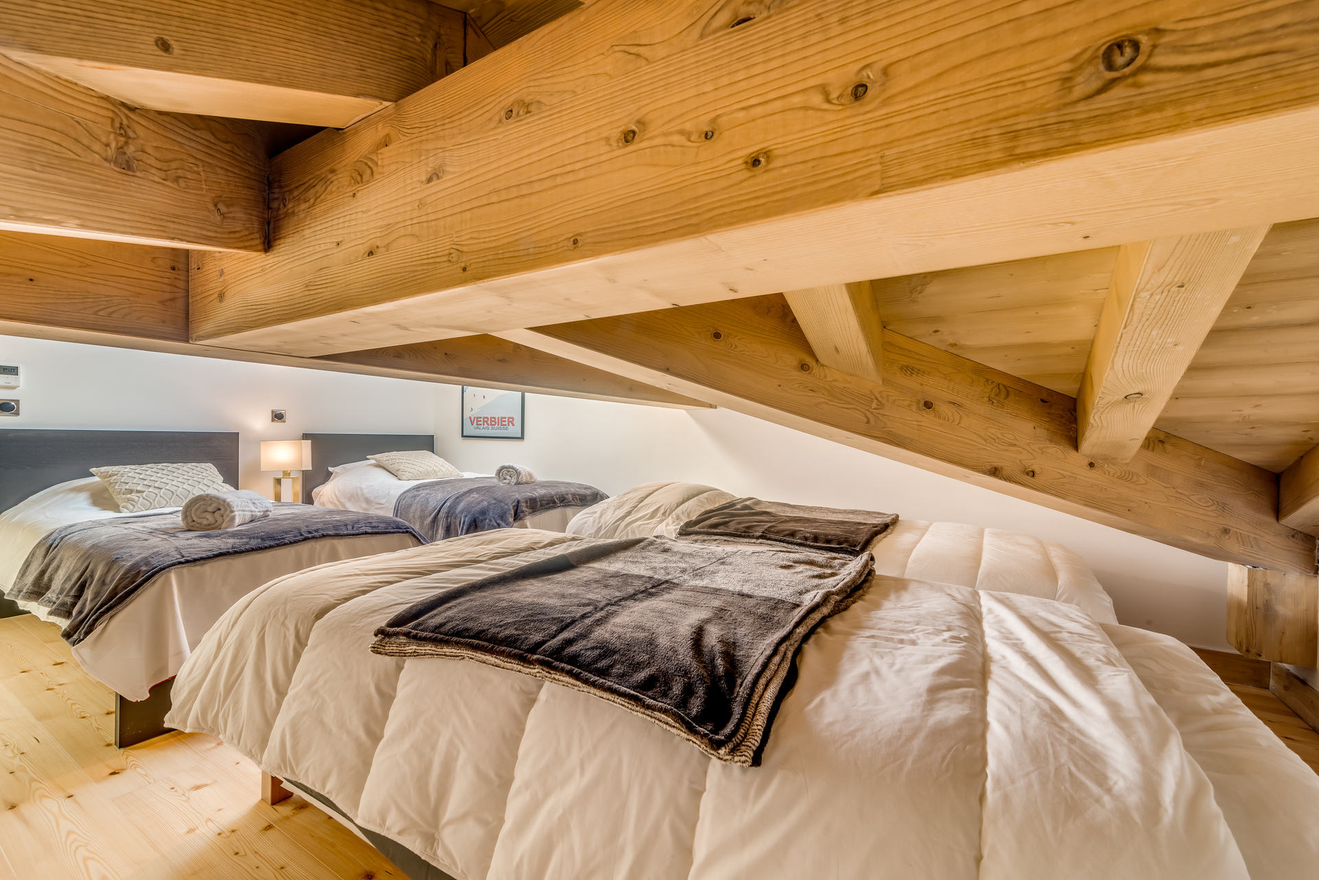 Chambre 4 - VERBIER: 4 lits simples (90x200), chevets, lampes de chevet placard avec etagere et penderie - fenetre de toit,