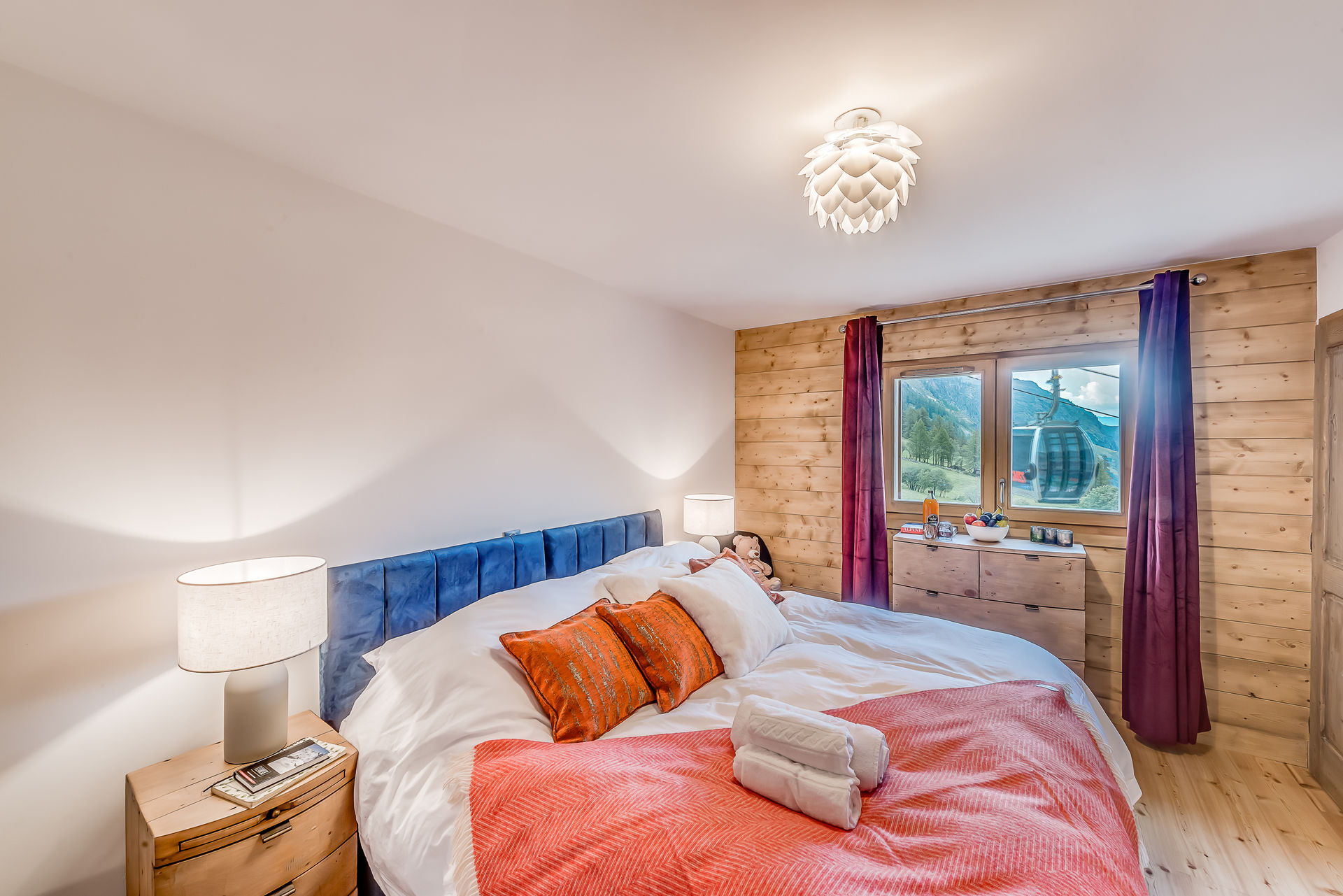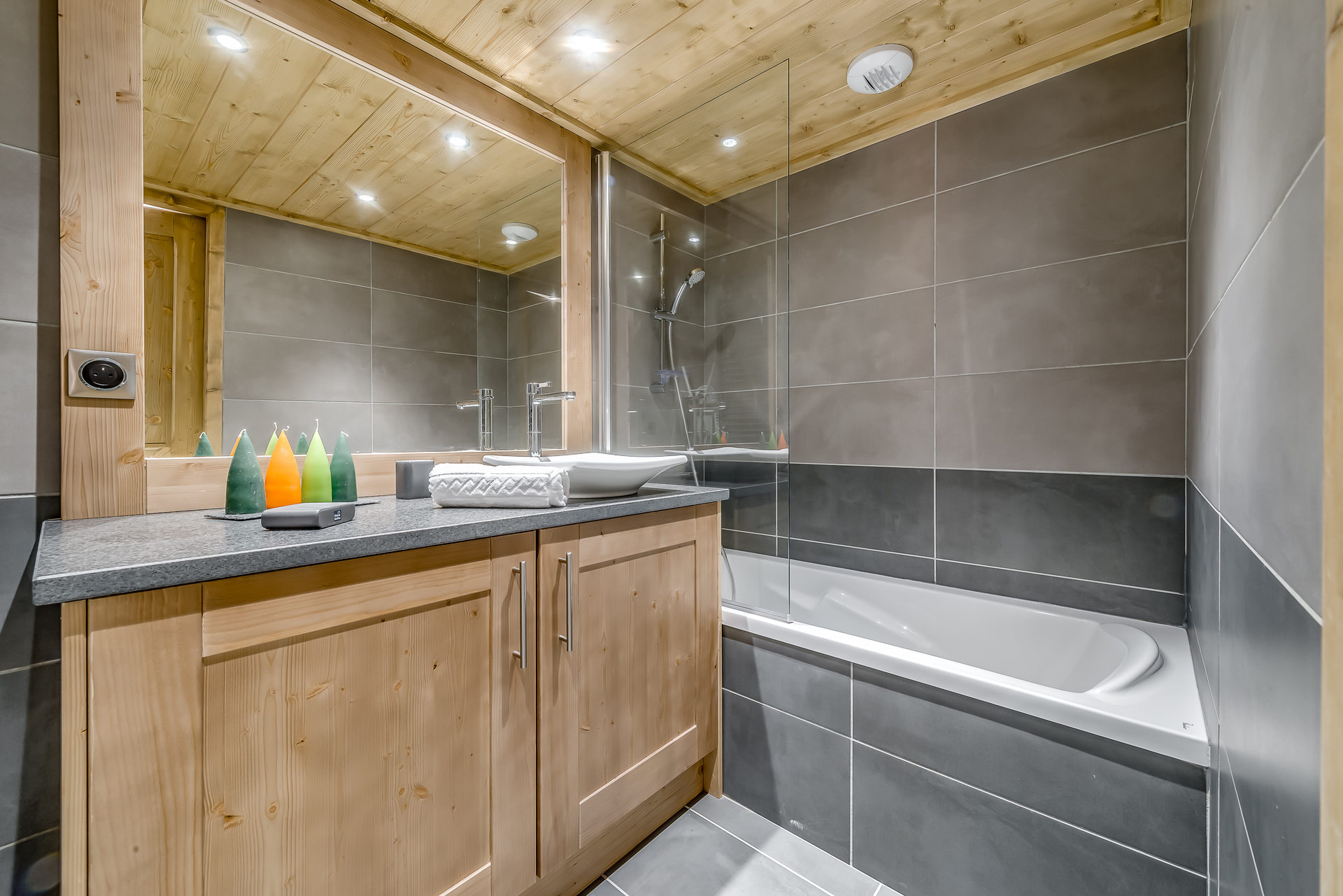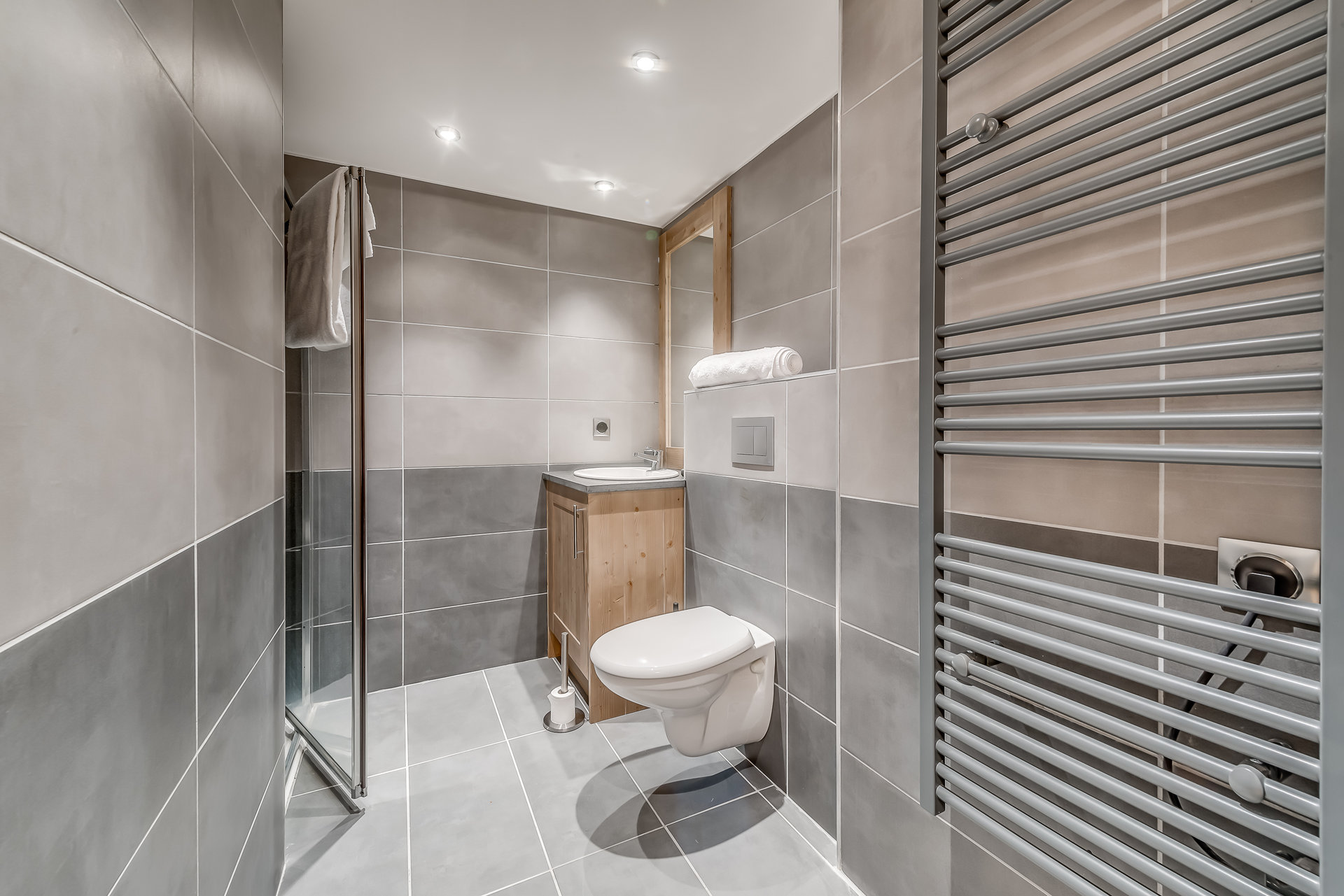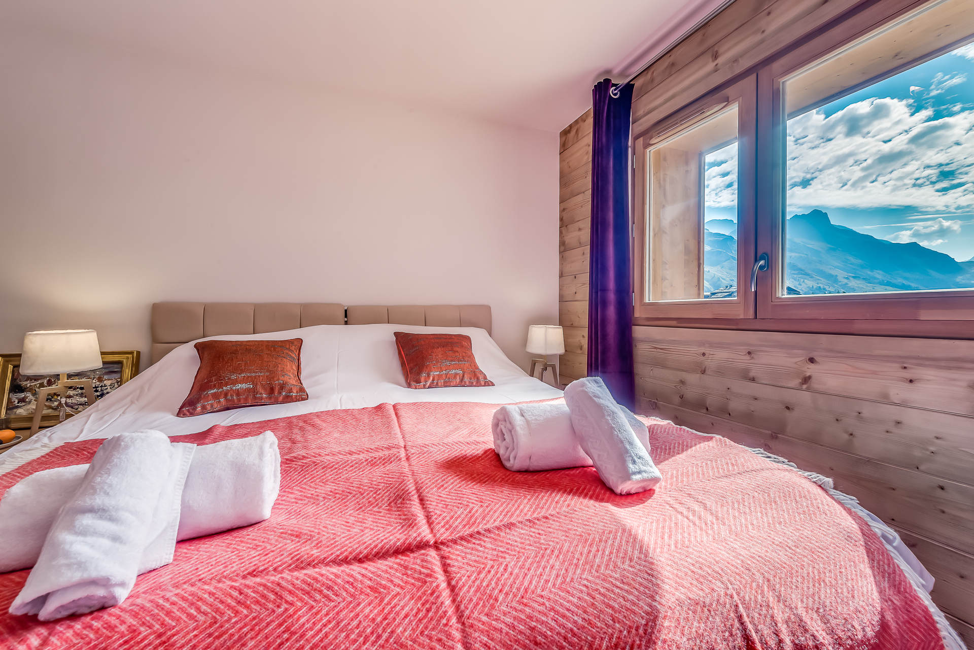 Appartement au 6eme etage de la residence, compose d'un sejour avec un grand balcon, de 4 chambres et de 4 salles de bains avec WC. Chauffage au sol controlable par piece - Casier a ski - 2 place de parking couvert dans la residence (hauteur 2.20m) - Acces Espace Detente (piscine et SPA)