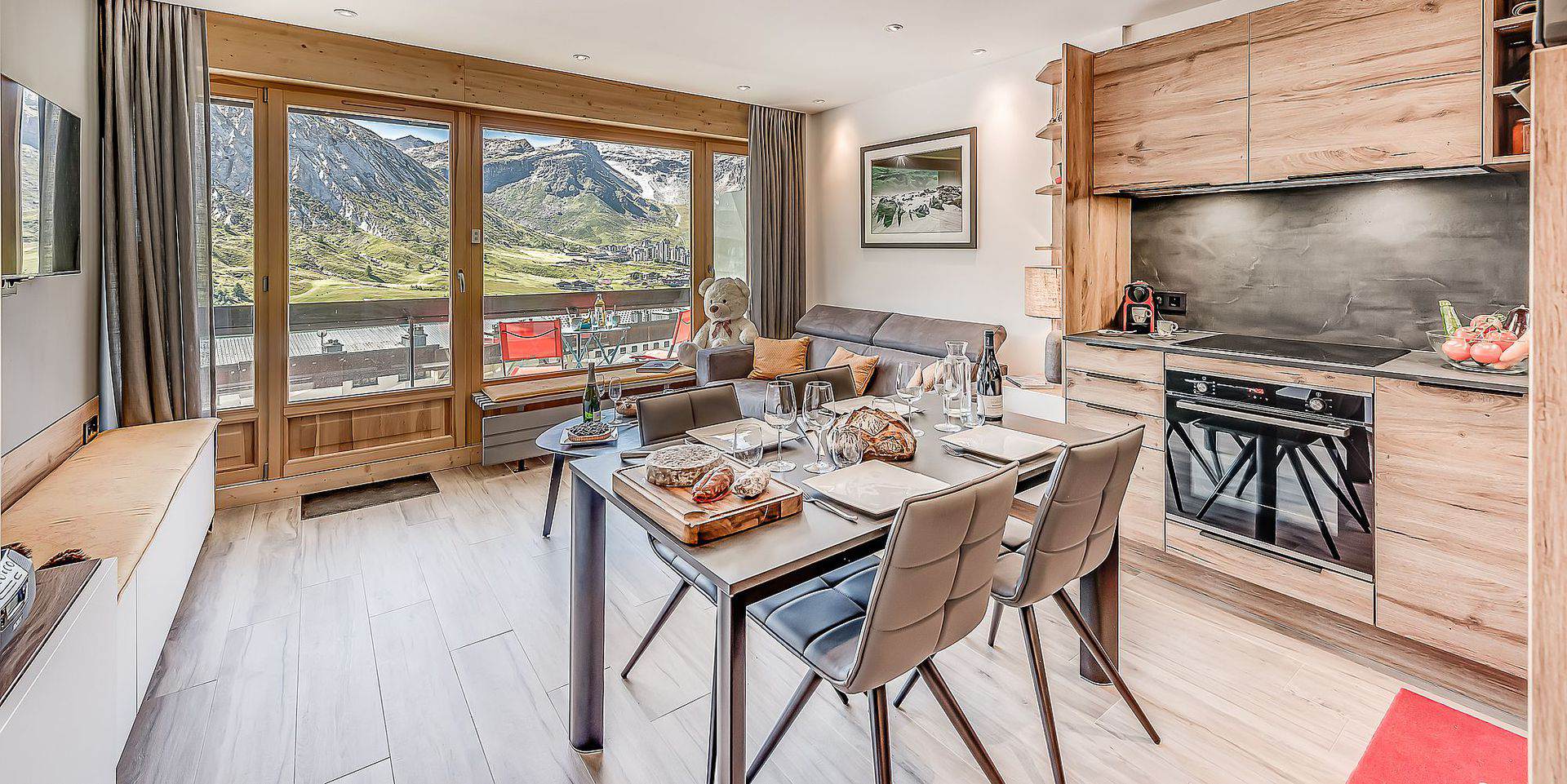 L'appartement bénéficie d'un balcon exposé sud avec une vue en grand panorama sur le Lac et le glacier de la Grande Motte. Il est entièrement rénové avec beaucoup de soin, ce qui le rend fonctionnel et très confortable.