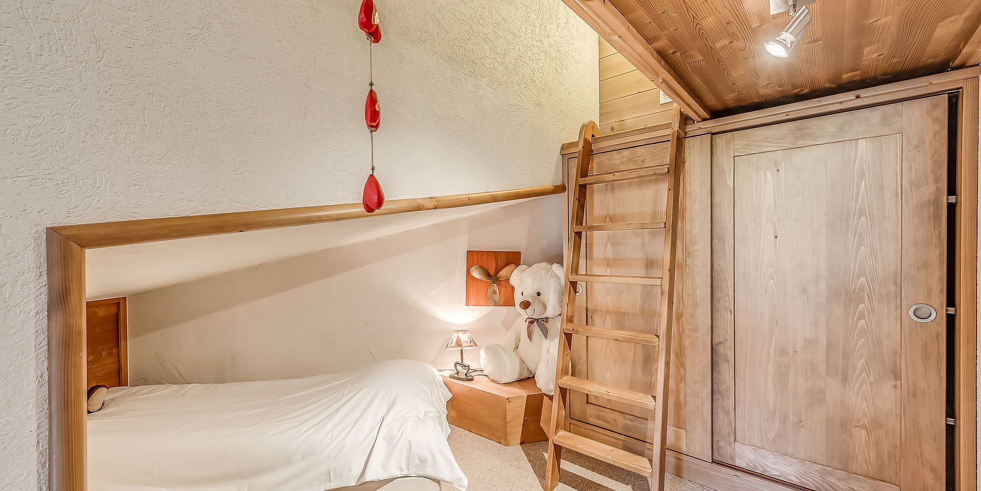- Coint nuit avec 1 lit simple sous toiture et 1 lit superpose (1 couchage) avec placard de rangement