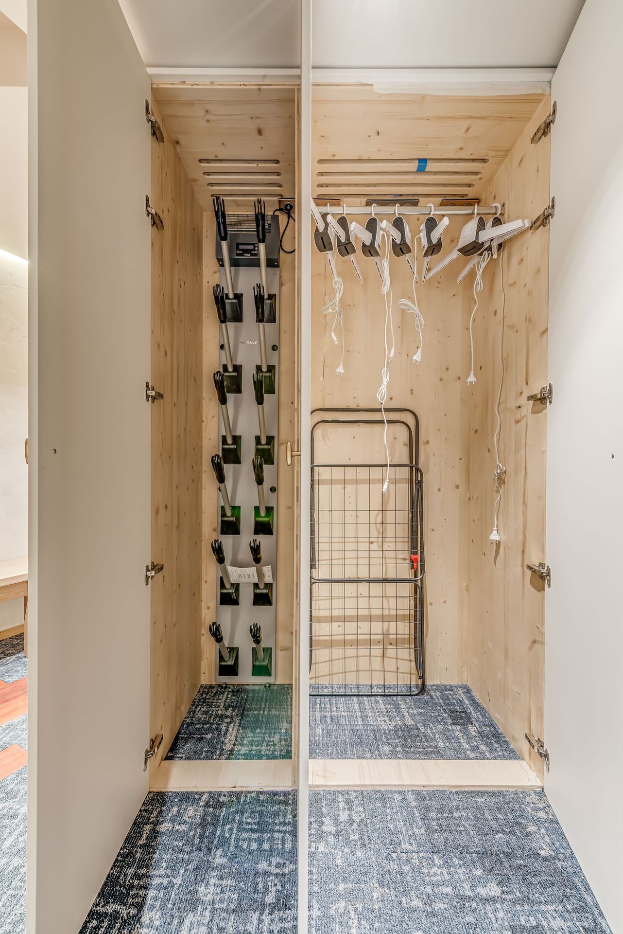 1 placard avec radiateur seche-chaussures de ski, et pour suspendre les combinaisons de ski et vetements d'outdoor.