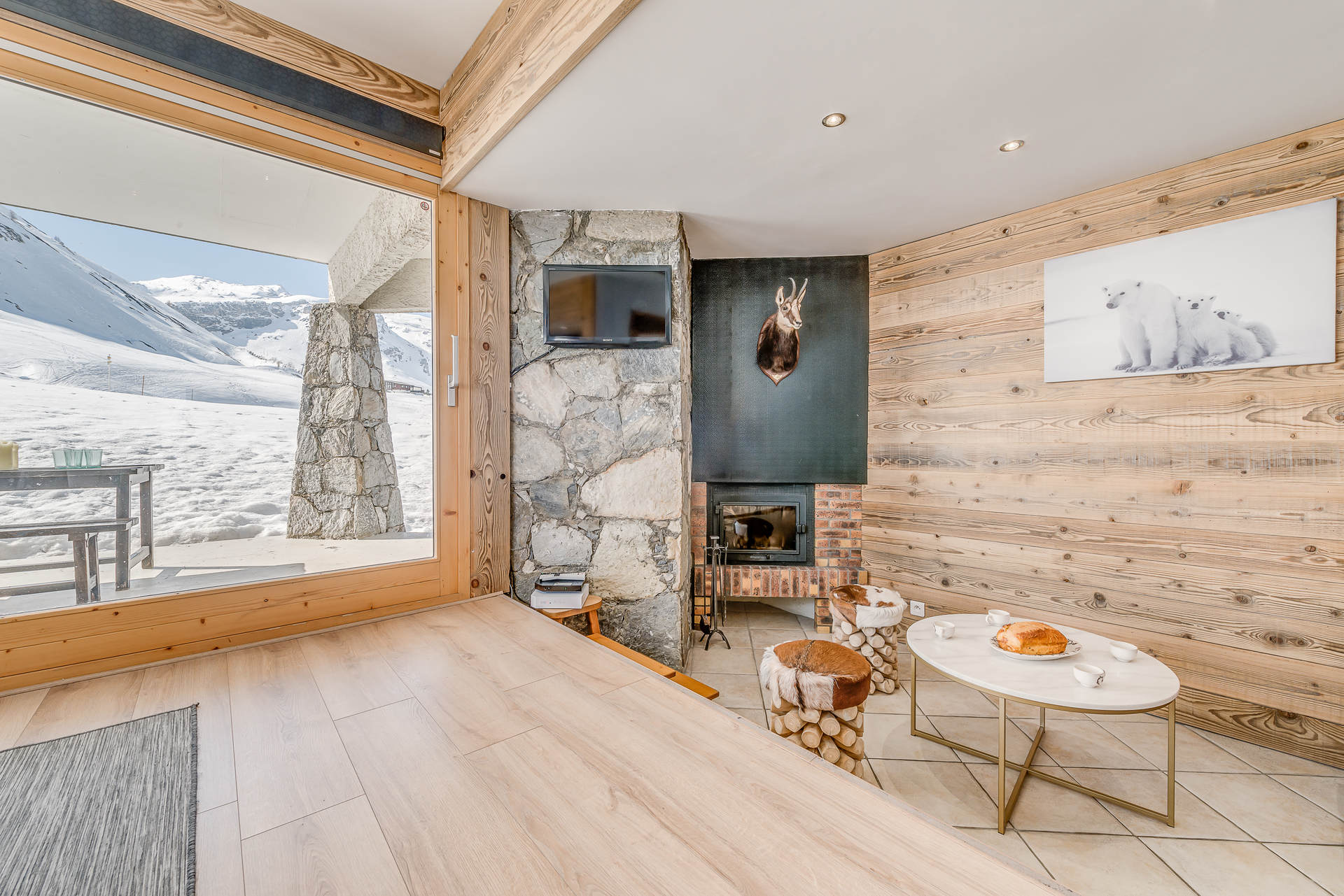 tr?s lumineux gr?ce ? deux grandes baies vitr?es ouvrant sur le golf (en ?t?) le site enneig? (en hiver).