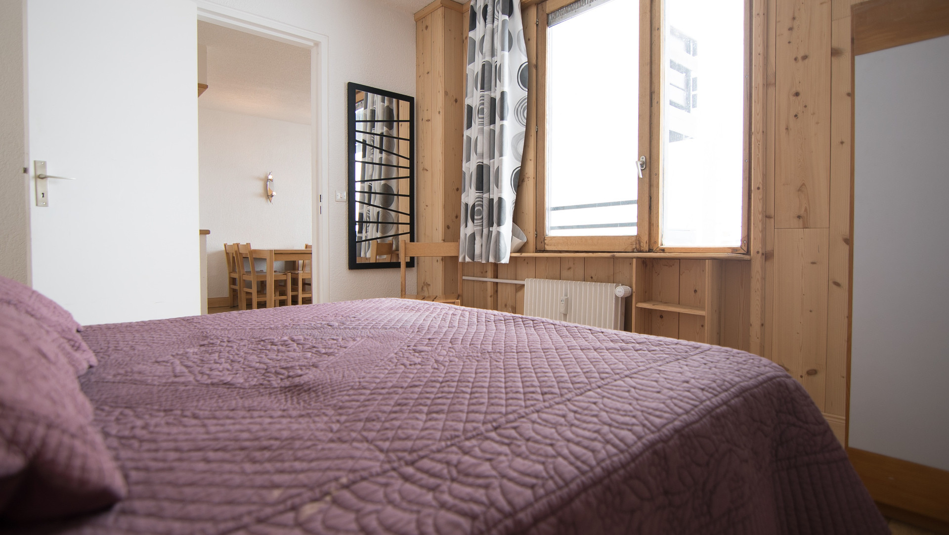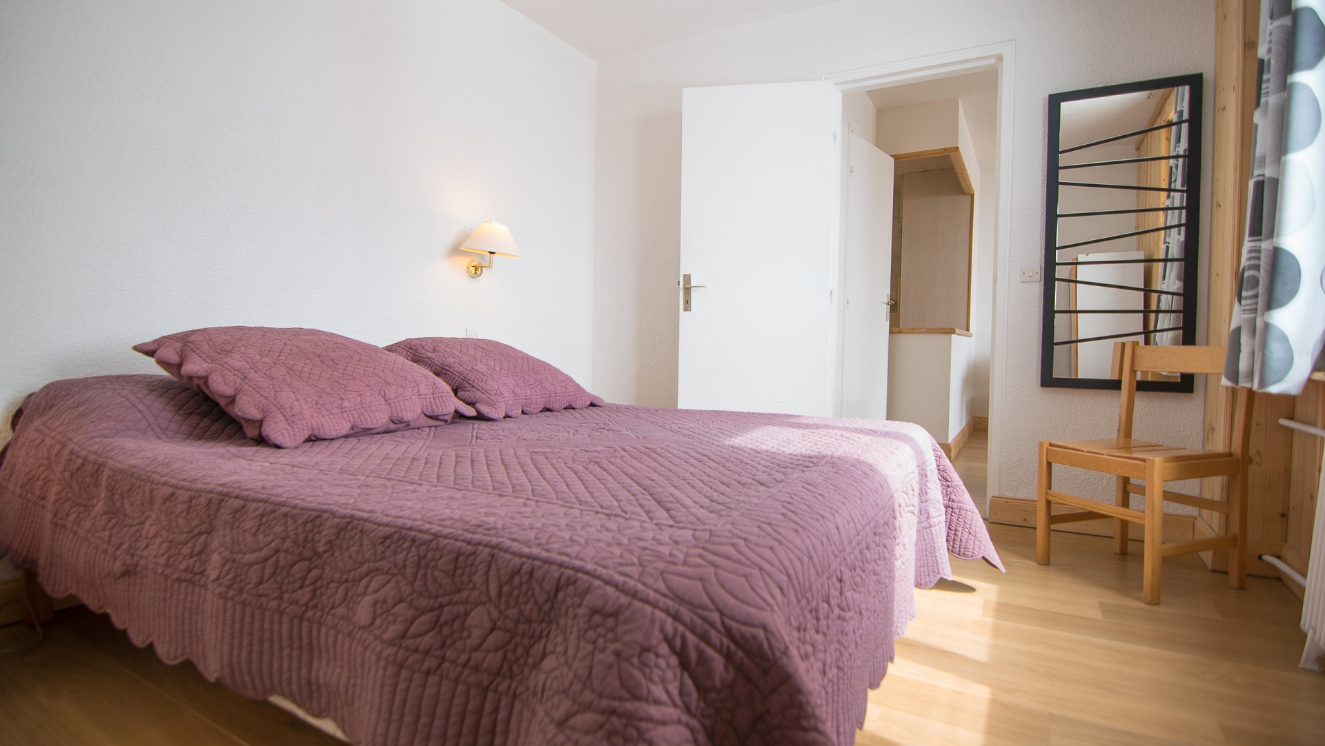 Chambre : un lit double de 160cm. Avec Fenêtre et séparation porte.
