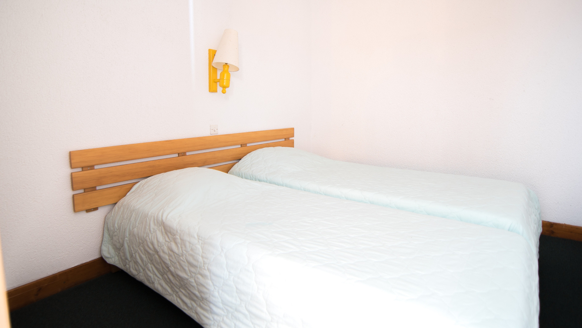 Chambre sans fenêtre, séparation porte : deux lits simples.