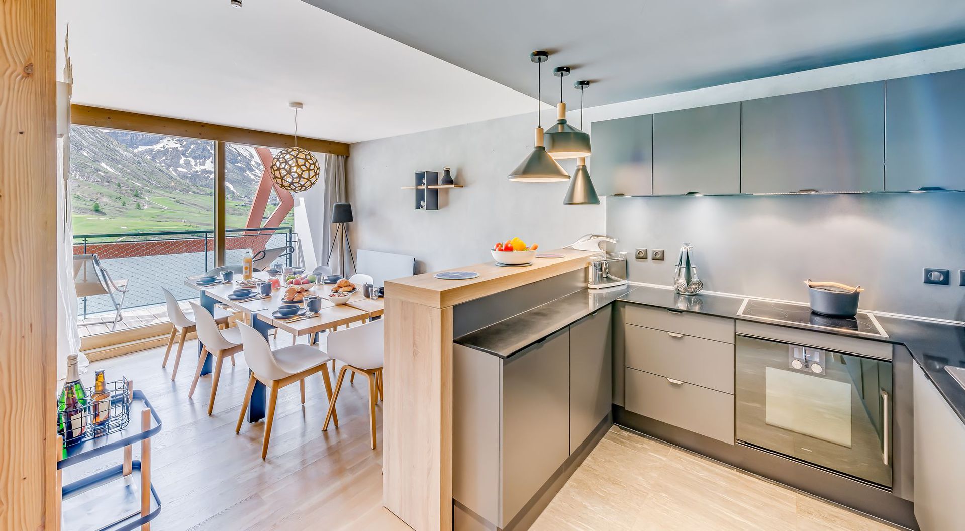 Il possede un balcon expose plein sud, avec vues exceptionnelles et degagees sur le lac naturel de Tignes, les massifs de Toviere et le glacier de la Grande Motte