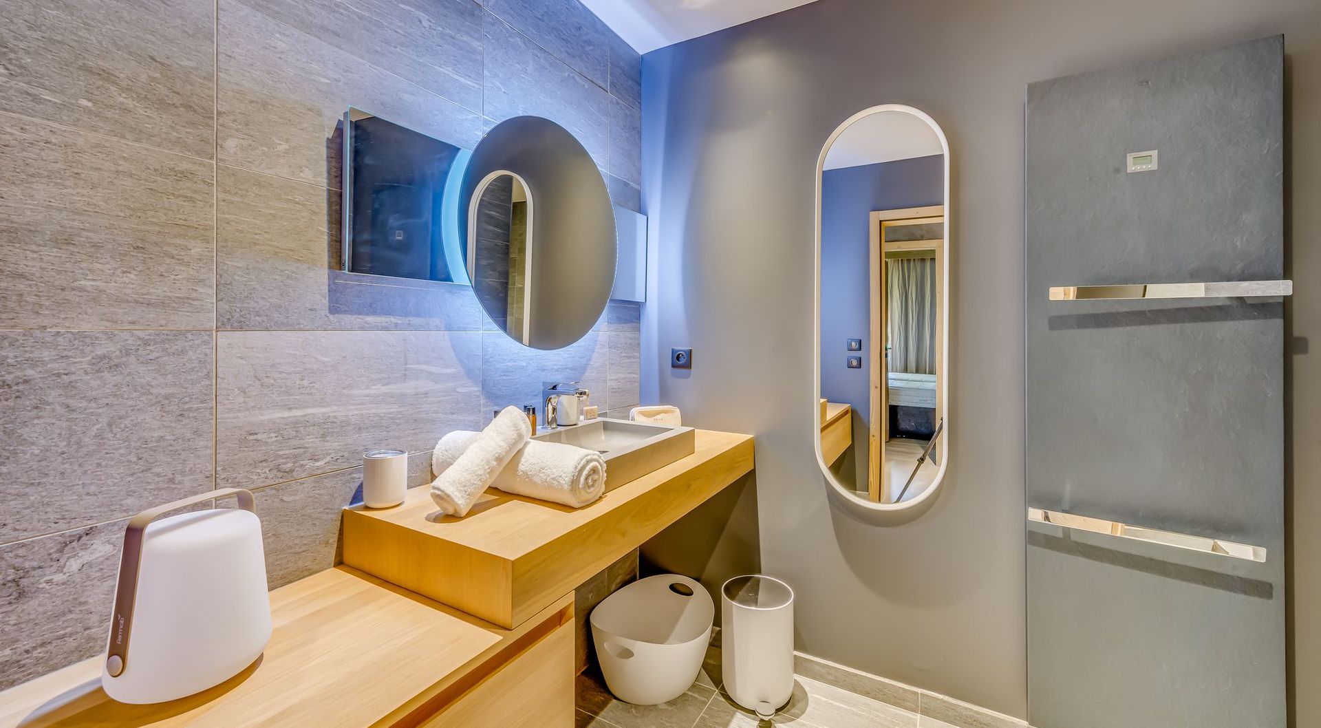 * Une suite parentale avec lit double en 160*200 cm - placards de rangement - smart TV - salle de bain avec baignoire - vasque et WC - exposee sud
